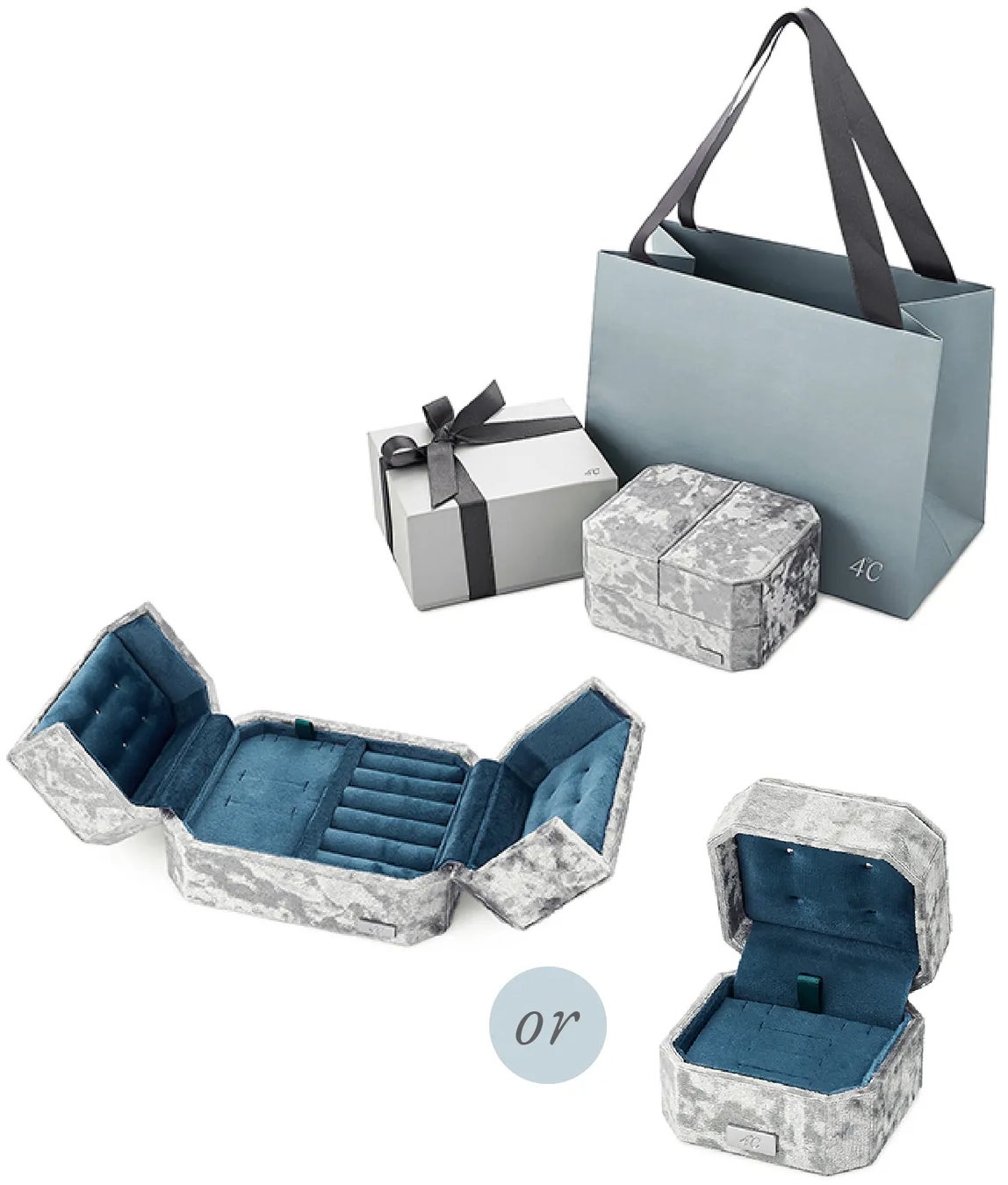 2025 Holiday Collection のジュエリーは、上質な光沢のあるベロアのケースと期間限定のショッパーにお包みしてお渡しいたします。
