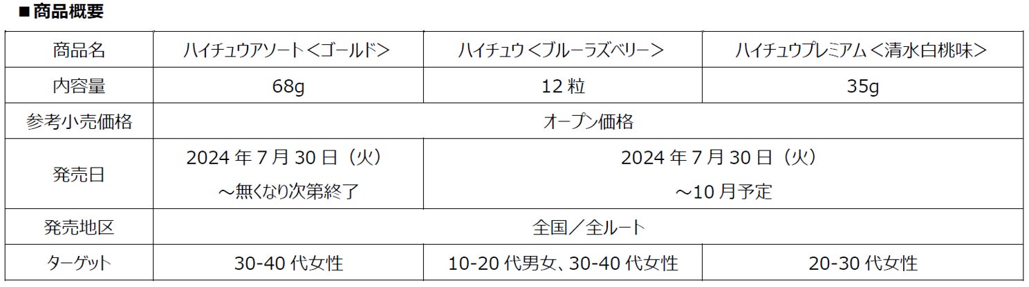 8月12日はハイチュウの日 夏休みの行楽や帰省など楽しいシーンに「ハイチュウアソート<ゴールド>」「ハイチュウ<ブルーラズベリー>」「ハイチュウプレミアム<清水白桃味>」7月30日(火)より新発売!