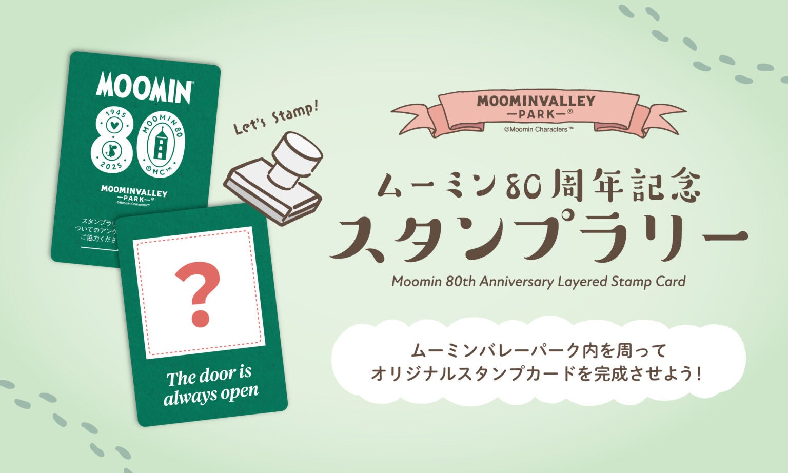 ムーミン80周年の記念ロゴがデザインされたカードを入園者全員にプレゼント!カードを持って、ムーミンバレーパーク内の6ヵ所のスポットを回ってスタンプを押そう!
