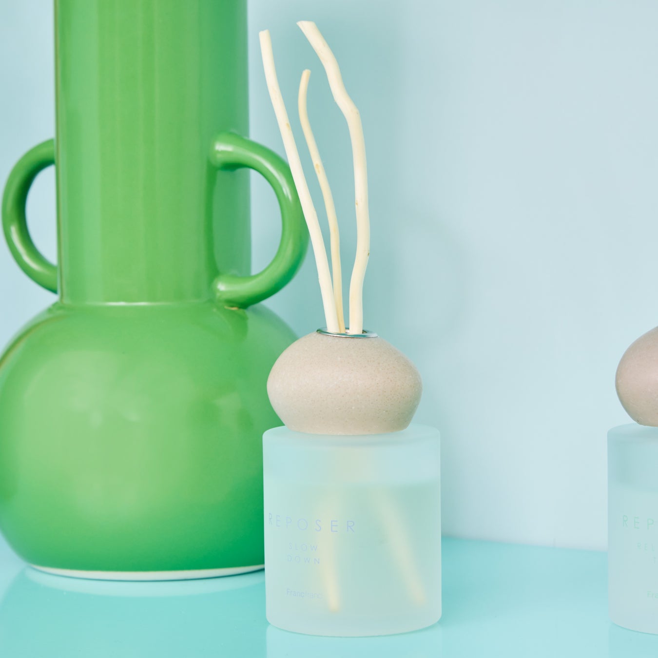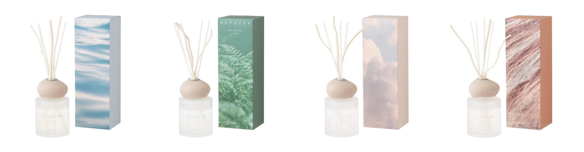 気分が揺らぎやすい季節にもおすすめの、心身のバランスを整えたいときや癒しを求める瞬間に寄り添うフレグランスシリーズです。香りを気分に合わせて選ぶことで、自分らしいリラックスタイムを演出します。自然の石を思わせる丸みを帯びたフォルムや、枝を模したリード、柔らかな白のフロストボトルなど、ナチュラルで温かみのあるデザインが視覚的にも癒しをもたらし、日常に静かなやすらぎを届けます。