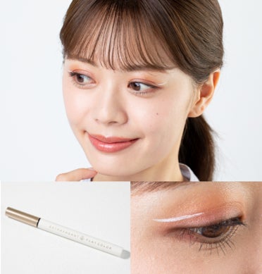 普段のメイクにワンポイントで白のアイラインを足すだけで一気にお洒落上級者になります。目元全体に入れてしまうと白の印象が強くなってしまうので、目尻のみに目の形に合わせて引くのがGOOD。二重の方は二重幅の延長線状に、一重の方は目尻の延長線上に少し入れてみましょう。ベースのアイシャドウはピンクでもブラウンでも可愛くなりますが、くすみ系のアイシャドウと合わせると似合わないので要注意です。
