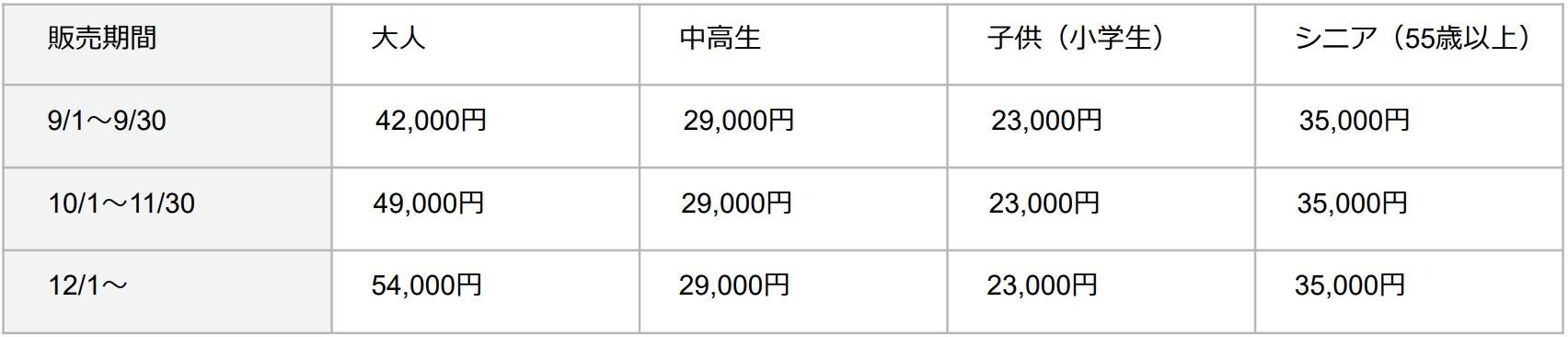 販売期間 | 大人 | 中高生 | 子供(小学生) | シニア (55歳以上) |