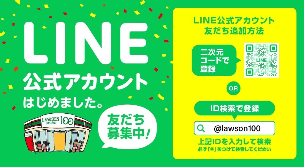 株式会社ローソンストア100(神奈川県川崎市)が運営する「ローソンストア100」(647店舗/2023年6月末現在)は、2023年8月1日よりLINE公式アカウントをスタートします。お友達登録していただくと、新商品やセール情報、クーポンなどおトクな情報をお届けします。