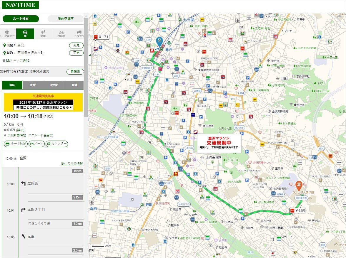 ユーザーは、対象となるエリアを検索すると、交通規制を回避した迂回ルートを自動で検索できます。リアルタイムの交通・渋滞情報も考慮したルート検索も可能です。