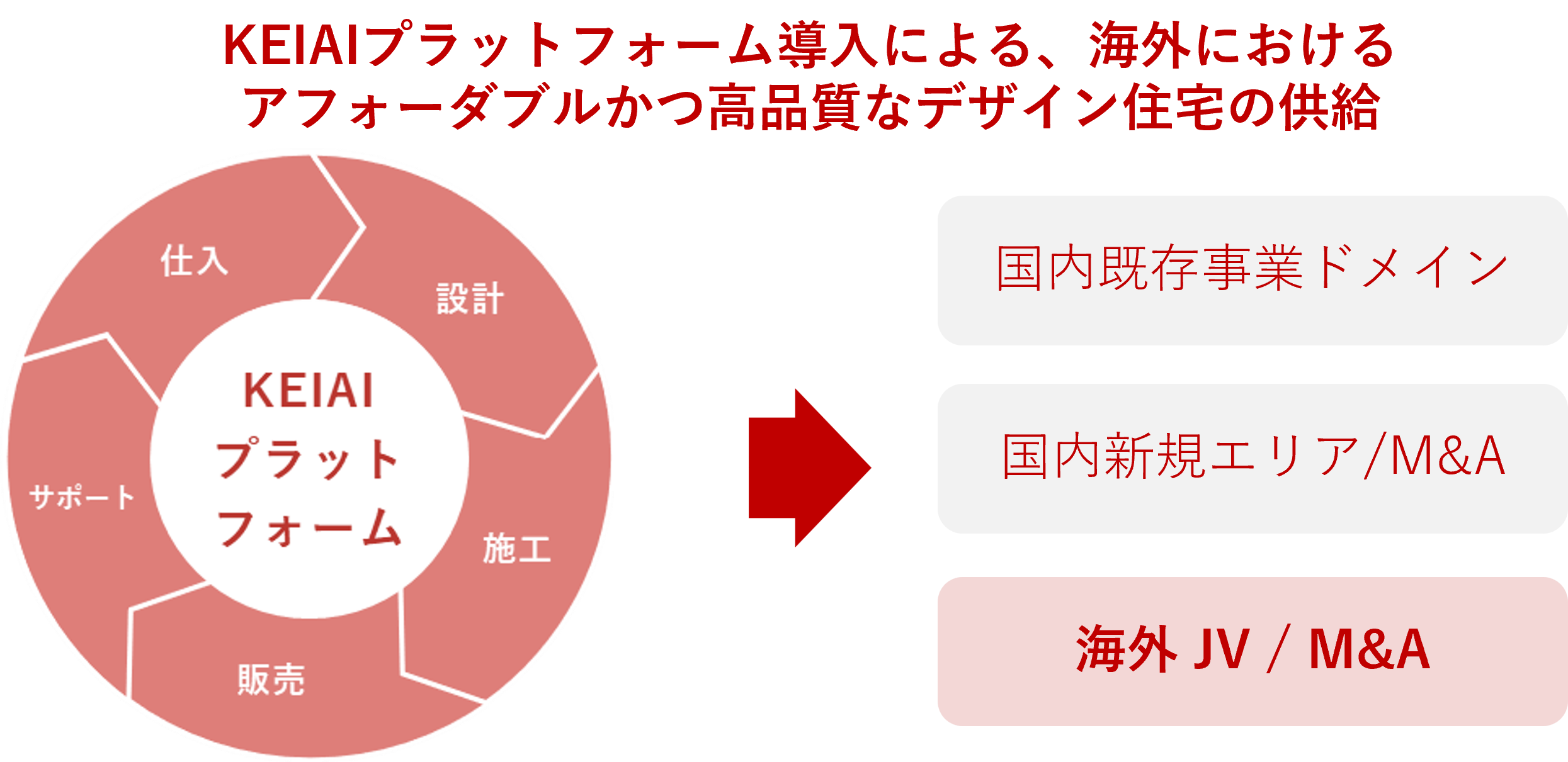 当社が拠点を有するビクトリア州はメルボルンを州都として、地域外からの人口流入等による安定的な人口の増加が見込まれており、また、メルボルン郊外に広大な開発可能エリアを有することから、今後も中長期的に安定した戸建住宅・タウンハウス需要の成長が見込まれています。一方、オーストラリアにおいては建設資材の価格上昇及び労働力不足等を要因とする住宅供給不足と価格高騰といった社会課題も有しています。当社グループはこのようなオーストラリアにおける住宅・不動産業界の課題に向きあい、当社が国内で培った「高品質だけど低価格(アフォーダブル)なデザイン住宅」のコンセプト、及び「KEIAIプラットフォーム」など当社のDX(デジタル・トランスフォーメーション)による生産性向上のノウハウによって、オーストラリアにおける住宅・不動産業界の課題解決をMunCorp社を通じて実現していきます。