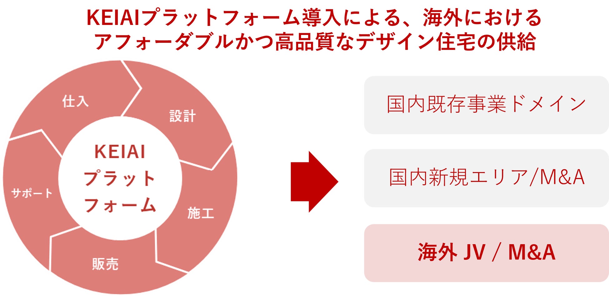 「豊かで楽しく快適なくらしの創造」を経営理念に、「すべての人に持ち家を」をビジョンに掲げ、『高品質だけど低価格なデザイン住宅』を提供しています。仕入れから販売までを一気通貫で行うリアル×テクノロジーの基盤である「KEIAIプラットフォーム」を構築。テクノロジーの積極的な導入とコンパクト戸建住宅による独自のビジネスモデルによって、国内分譲住宅市場シェアの拡大を図ります。今後も不動産業界のDXを牽引するリーディングカンパニーとして、価値ある分譲住宅を提供していきます。