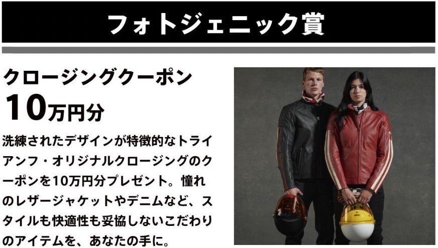 トライアンフとの写真を投稿して豪華商品をGET! |