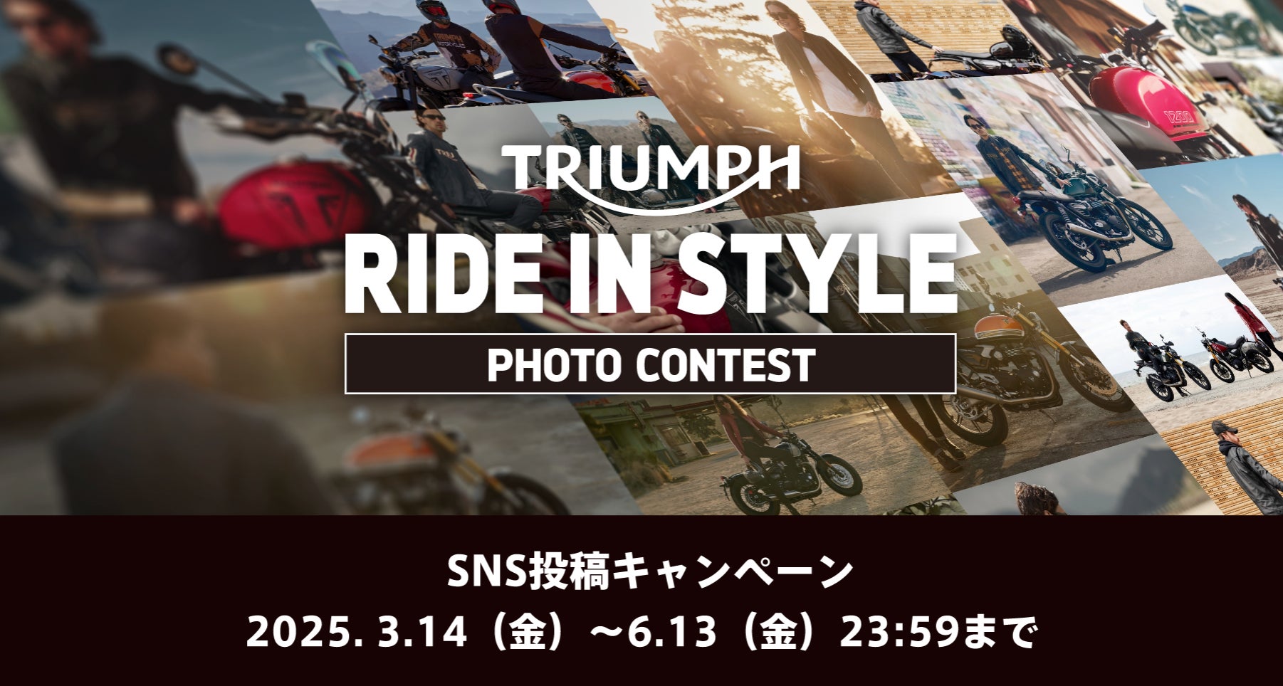 トライアンフモーターサイクルズジャパン株式会社(代表取締役社長:大貫 陽介、東京都港区)は、2025年3月14日(金)から6月13日(金)まで期間中、SNSでトライアンフと共にスタイリッシュな写真を投稿された方を対象とする「RIDE IN STYLE」フォトコンテストを開催することをお知らせします。