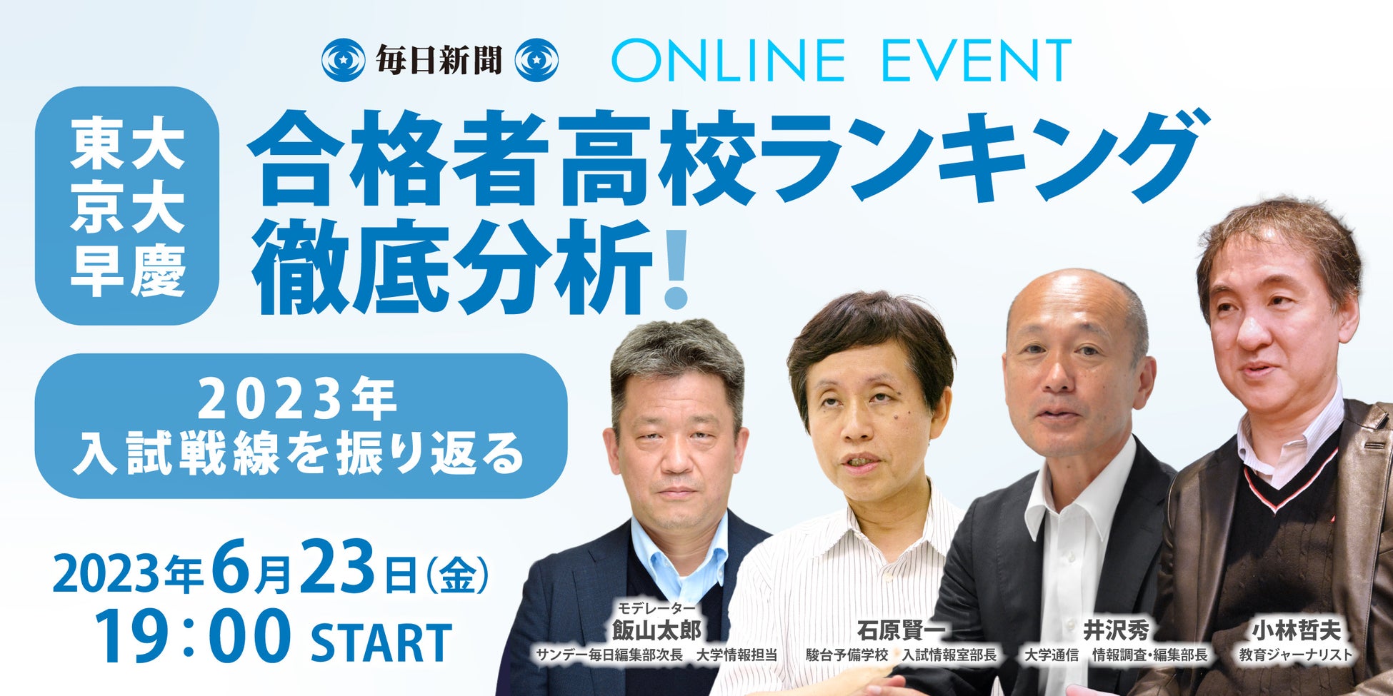 サンデー毎日発オンラインイベント「東大・京大・早慶合格者高校ランキング徹底分析!」6月23日(金)開催