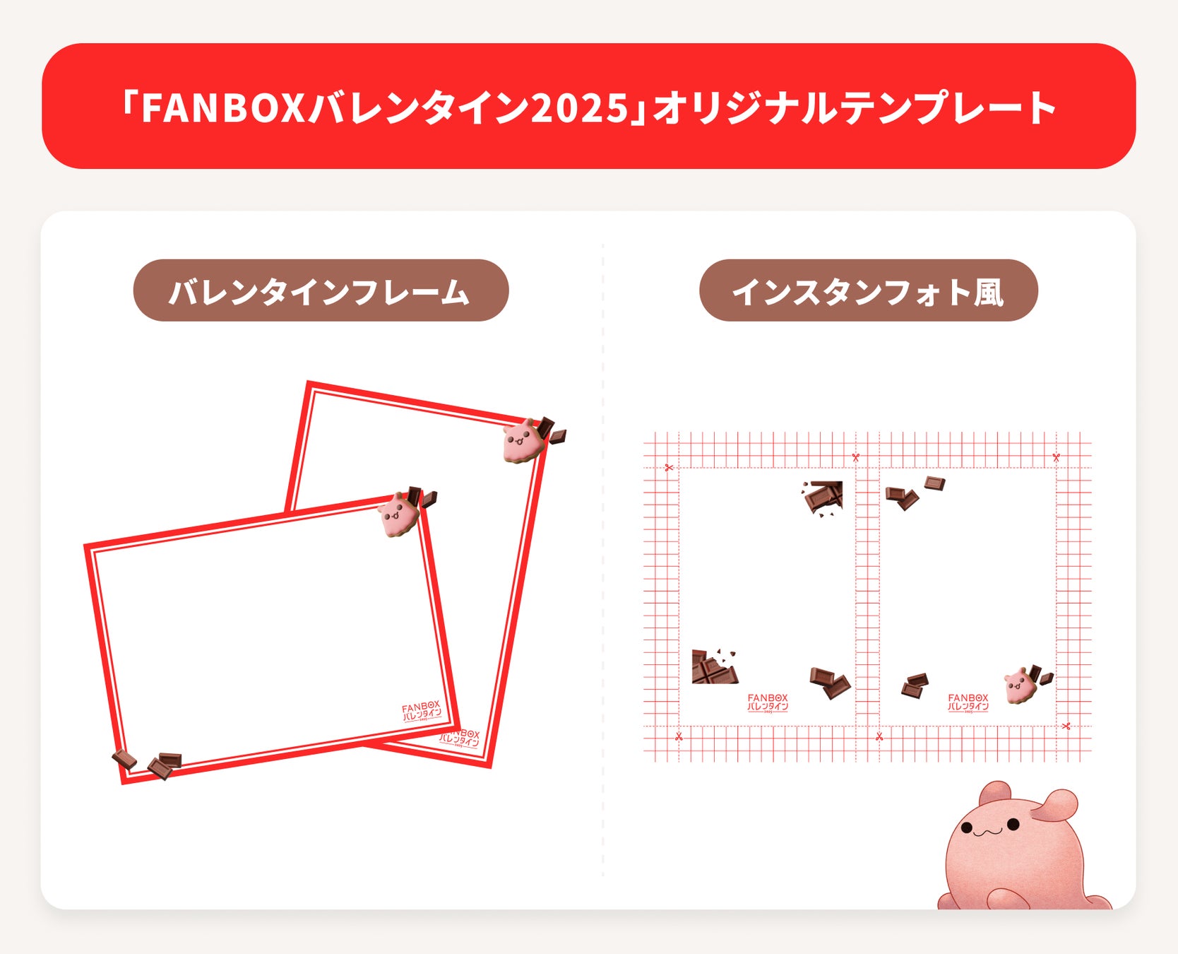 本企画では、「FANBOXバレンタイン2025」オリジナルのプリントテンプレートを3種類配布いたします。新規作品だけでなく、既存の作品にテンプレートを使いコンテンツを作成して企画に参加することも可能です。
