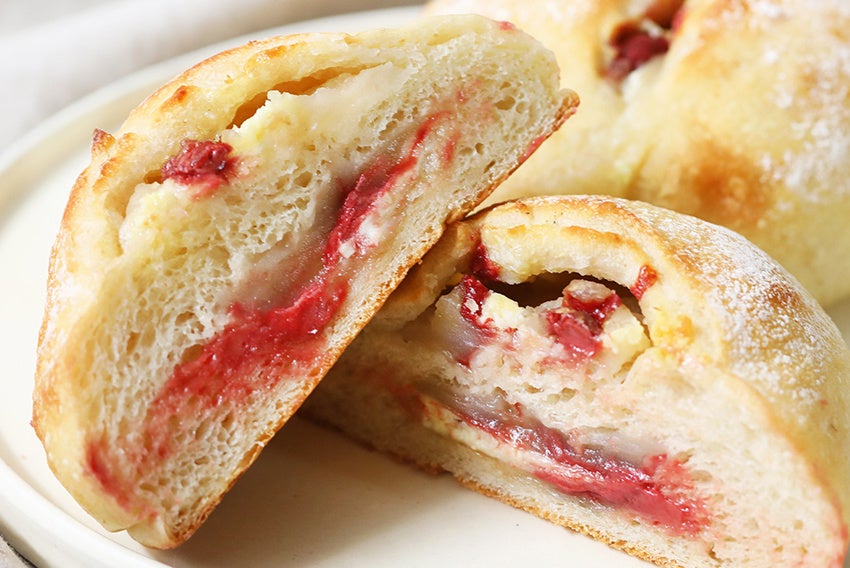 高加水の生地に白あんとホワイトチョコといちごチョコを丁寧に包んで焼き上げました。