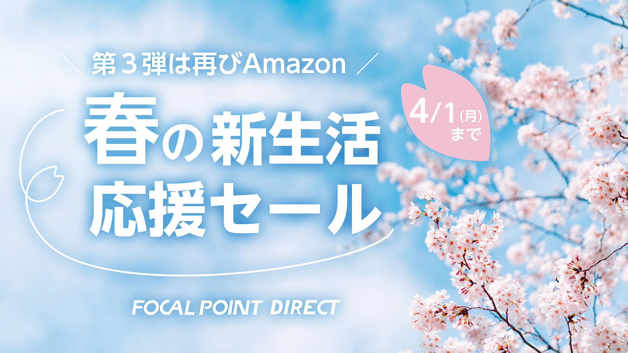 フォーカルポイント株式会社(本社:神奈川県横浜市、代表取締役 恩田英樹 以下フォーカルポイント)は、直営オンラインショップ フォーカルポイント・ダイレクトAmazon店で第3弾となる最大30%OFFの春の新生活応援セールを開催いたします。各ショップのセール開催期間は、以下の通りになります。