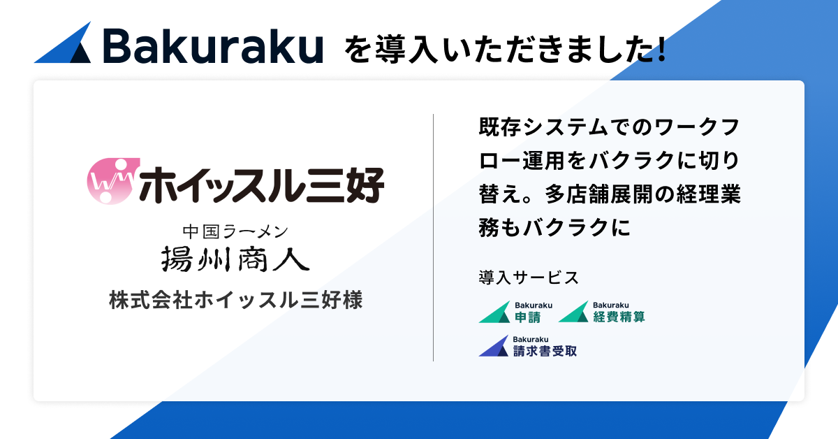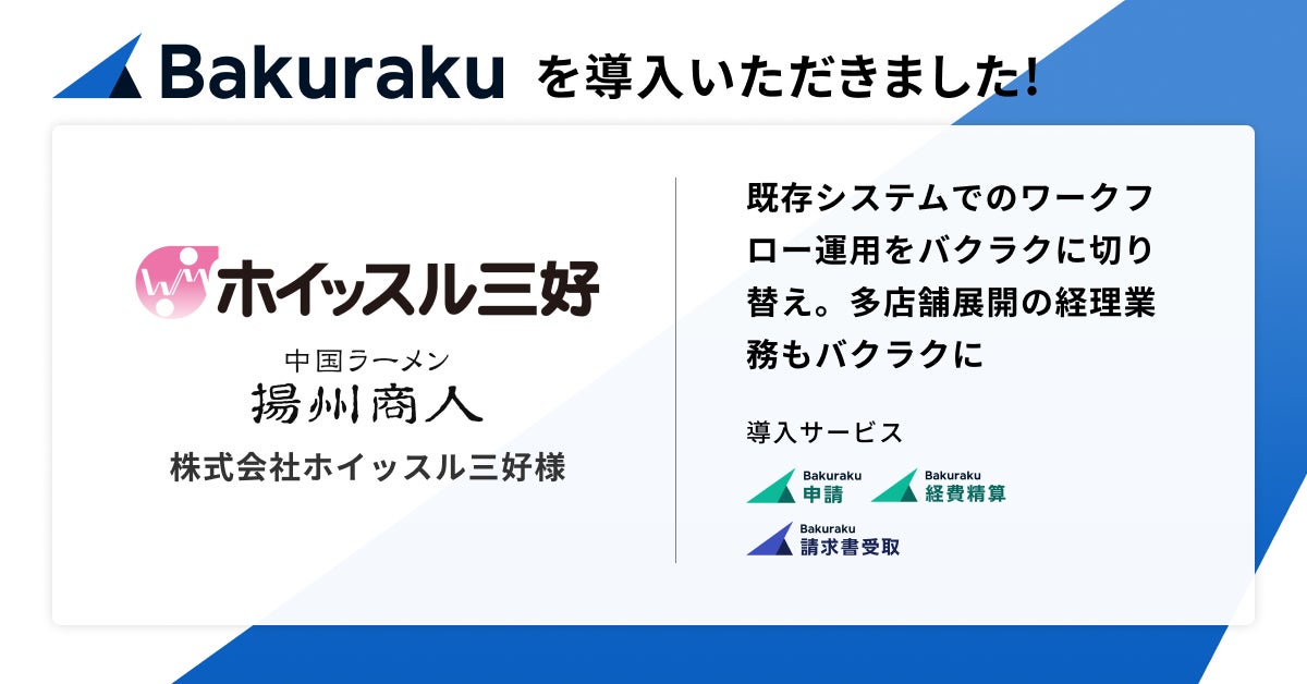 この度、関東で37店舗展開する1988年創業の中国ラーメン「中国ラーメン揚州商人」を運営する株式会社ホイッスル三好に「バクラク申請」「バクラク経費精算」「バクラク請求書受取」が導入されました。