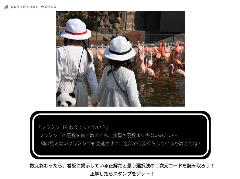 本日、3月22日(火)よりパーク内各所に動物にまつわる様々なクエストが出現する「どうぶつクエストアドベンチャー」を実施いたします。「クイズ」や「プチ飼育体験」クエストをクリアし、スタンプを集めると動物たちへのフィーディング(おやつ体験)などの「特典(特別イベント)」に参加が可能です!たくさんのクエストをクリアし、特別な体験やグッズをGETしよう!