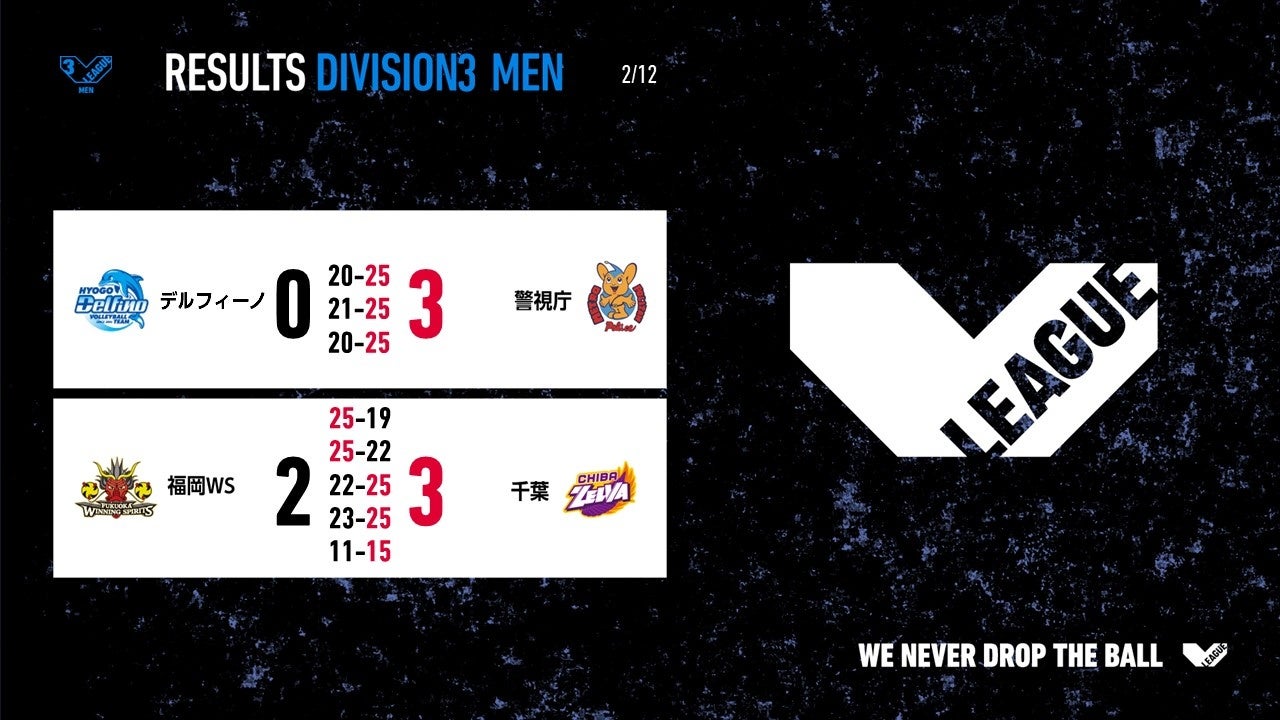 バレーボール国内最高峰リーグ V.LEAGUE【02月12日の試合結果】