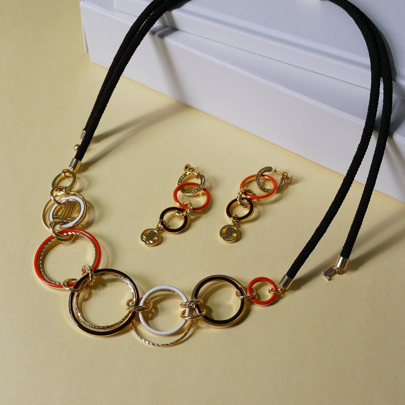 表情の異なる大小様々なサークルパーツをランダムに組み合わせたデザインが遊び心のあるコレクション。