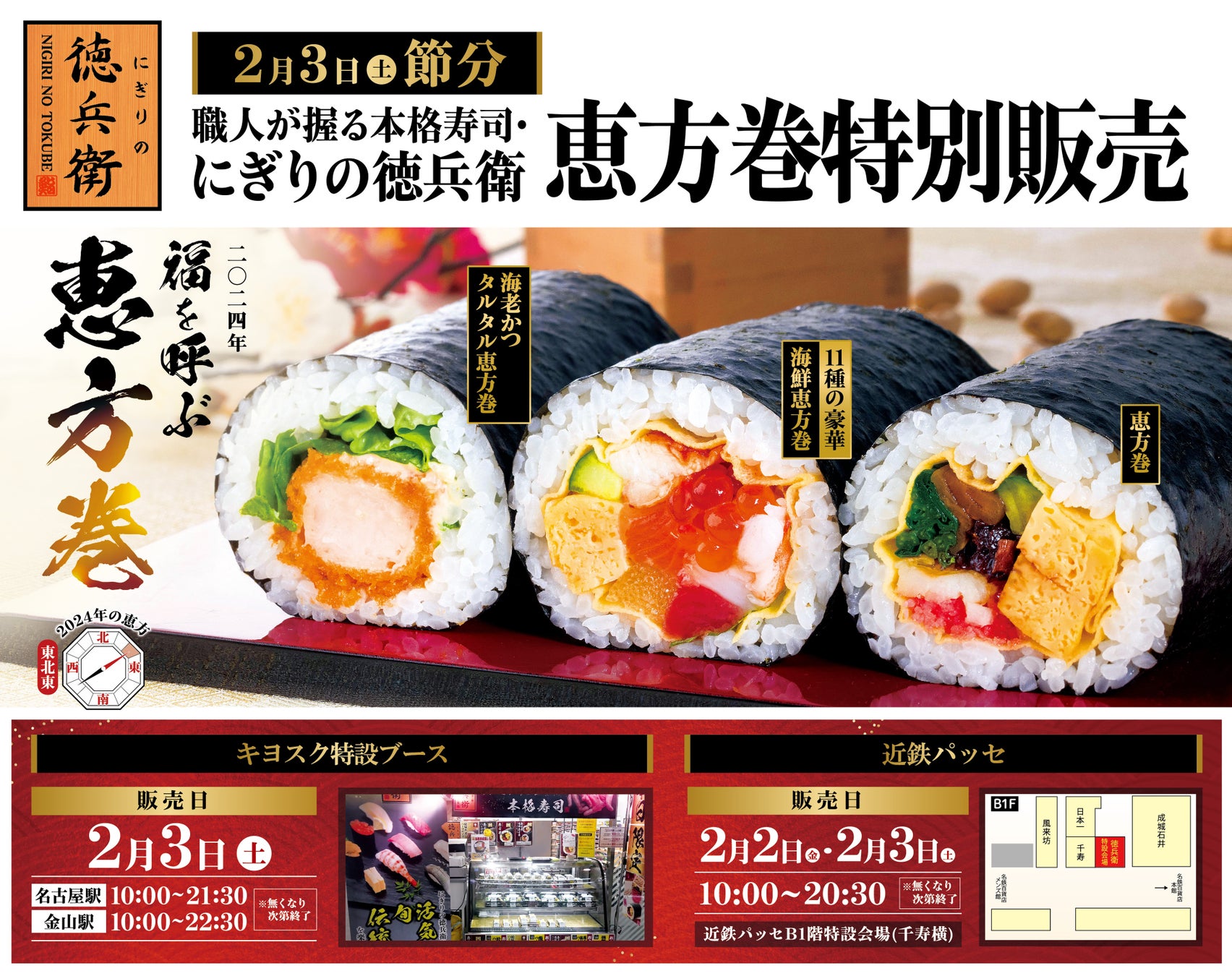 「にぎりの徳兵衛の恵方巻」キヨスク名古屋駅店・金山店&近鉄パッセで特別販売!