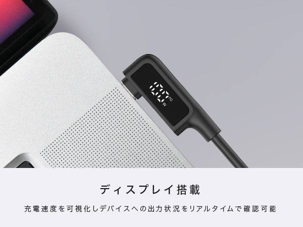 手触りなめらかなシリコン被覆で、絡まりにくいケーブル・100W対応・出力表示ディスプレイ・iPhone15対応
