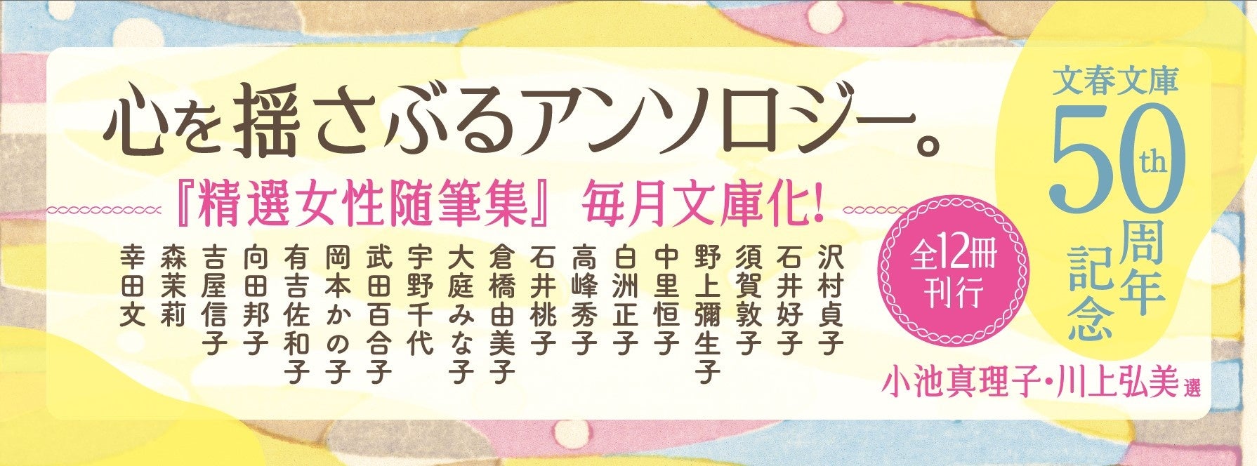 株式会社文藝春秋(本社:東京都千代田区 社長:飯窪成幸)は、2023年に「文春文庫」の50周年記念事業として開始した、単行本『精選女性随筆集』シリーズ(2012年刊・全12巻)の完全文庫化プロジェクトを展開中です。