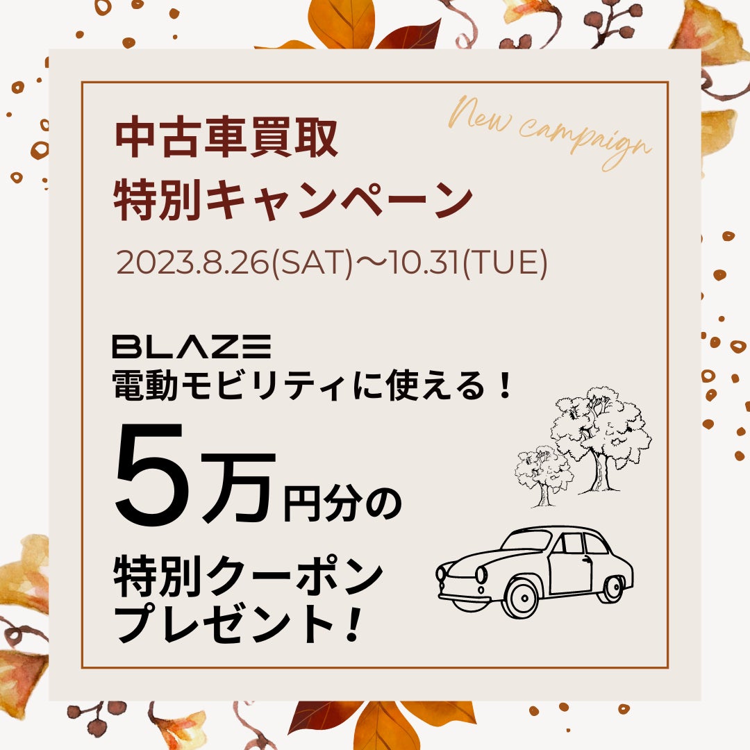 (株)ブレイズ「中古車買取特別キャンペーン」のお知らせ