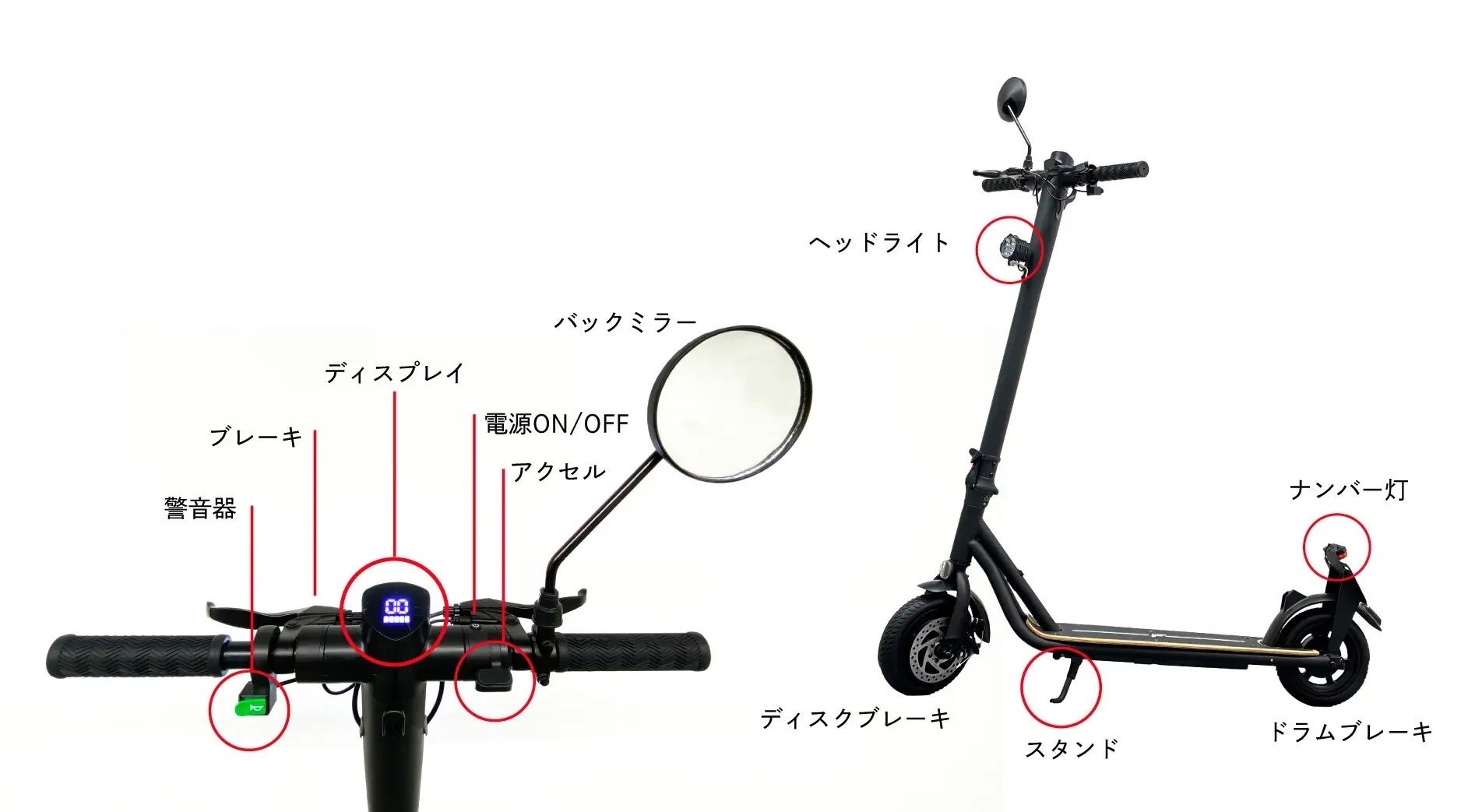 ※ナンバーを取得した本商品は2023年7月以降も、50ccの原動機付自転車と同じ区分の電動キックボードとして有効な運転免許証と、走行時にはヘルメットの着用して公道を走行していただけます。