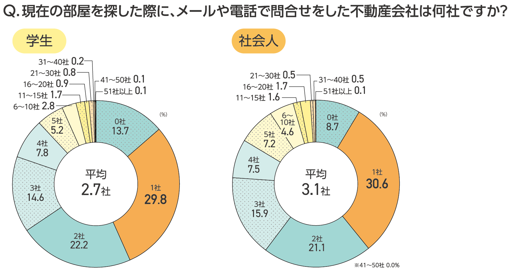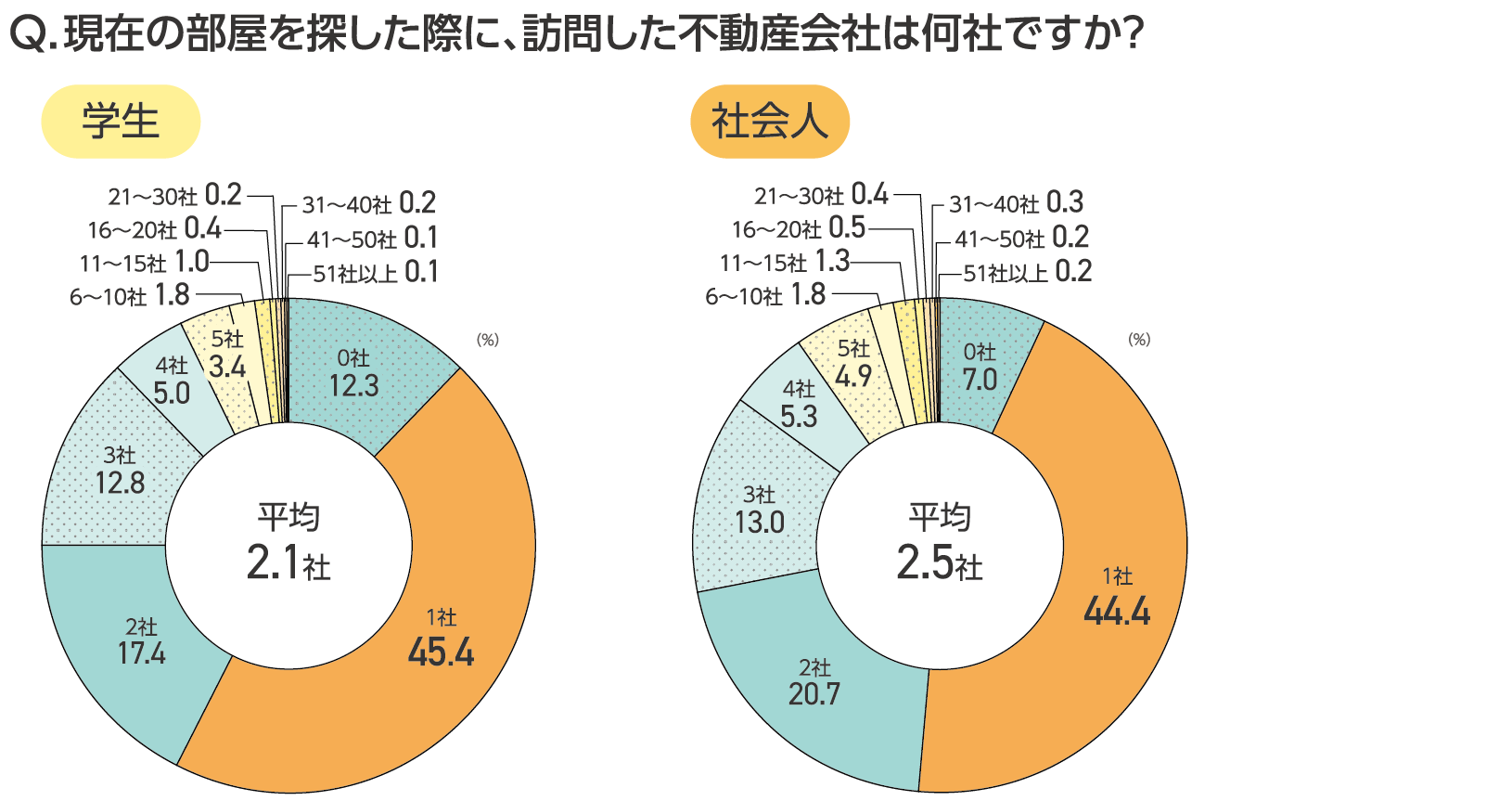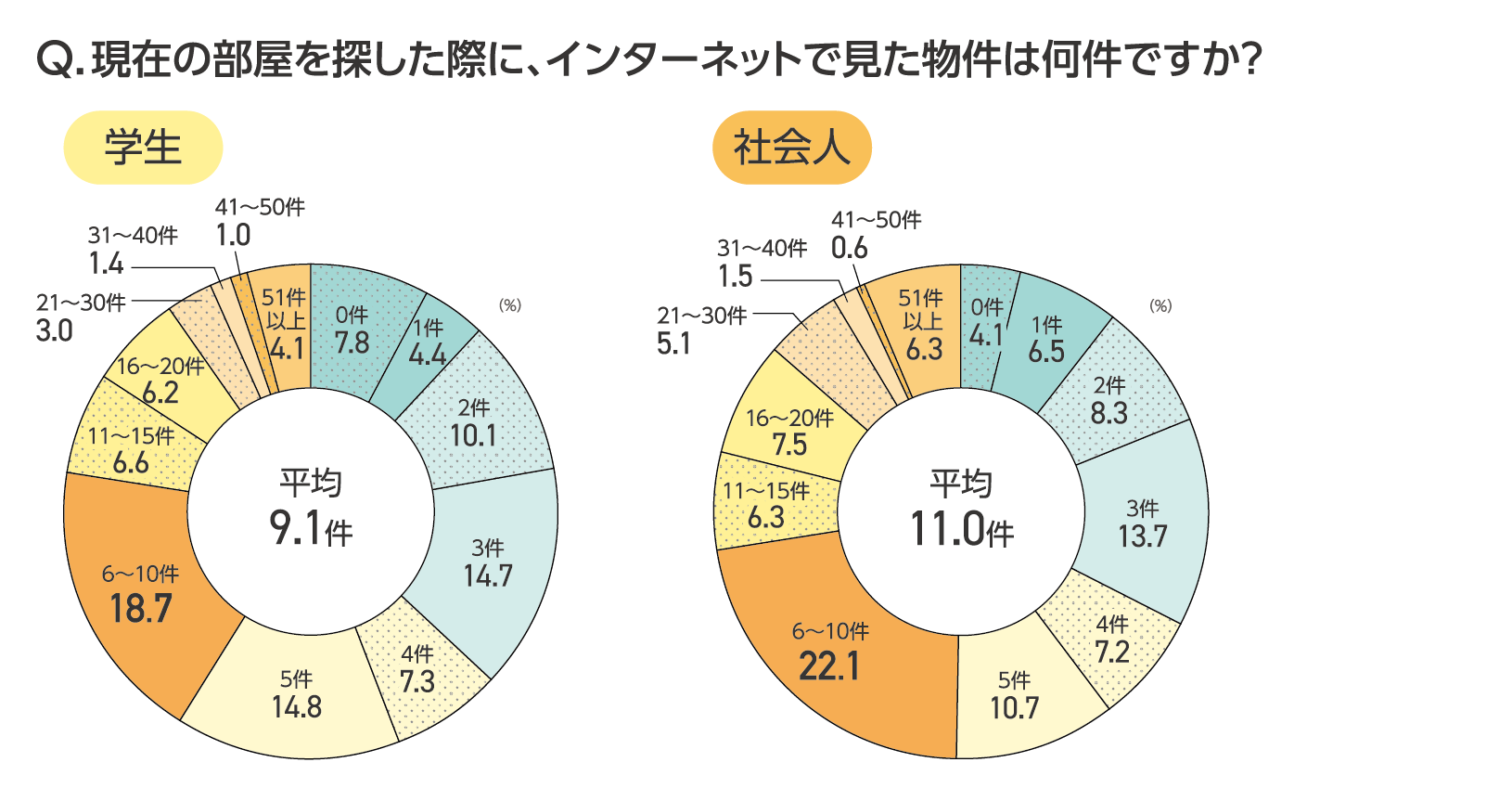 ・インターネットで見た平均物件数、学生は9.1件、社会人は11.0件