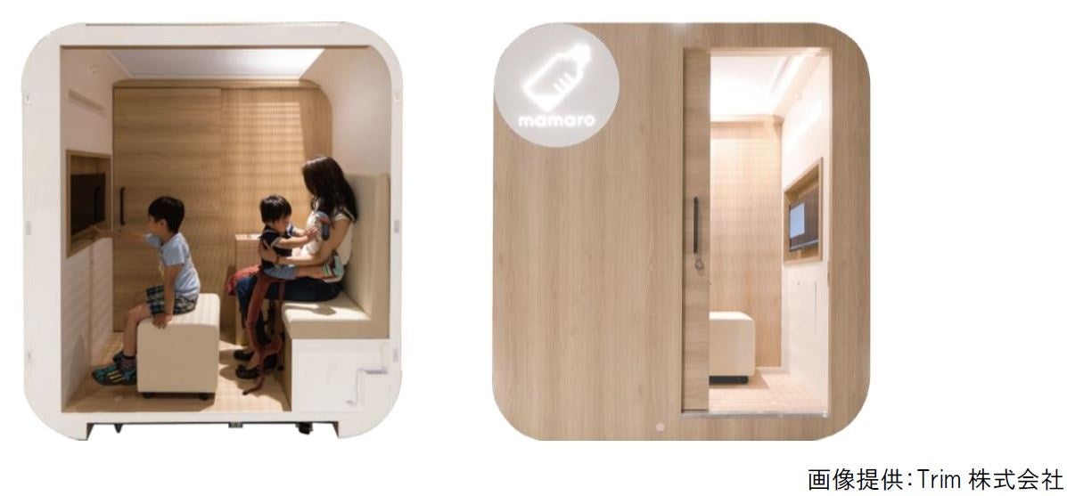 授乳、おむつ替え、離乳食などに利用できる、完全個室のベビーケアルーム(設置型授乳室)です。横浜に本社を構えるTrim株式会社が開発・販売しています。