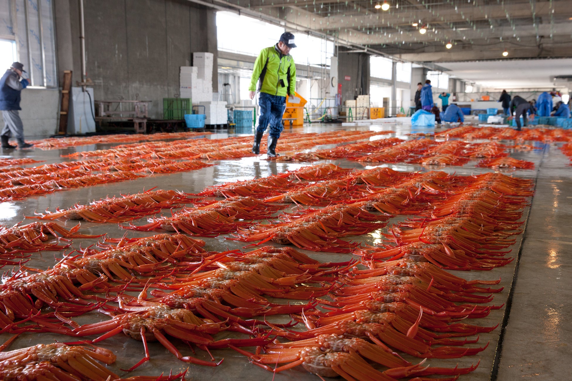 新湊漁港の昼セリ見学と、富山湾で水揚げされ、その日に競り落とされた高志の紅ガニ(こしのあかがに)を併設の新湊かに小屋で楽しむツアーをセットした宿泊プランを販売しています。