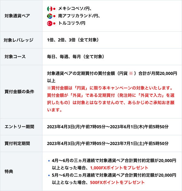 株式会社外為どっとコム(本社:東京都港区、代表取締役社長:竹内 淳)は、FX積立『らくらくFX積立』におきまして、2023年4月3日(月)より「定期買付応援キャンペーン」を実施します。