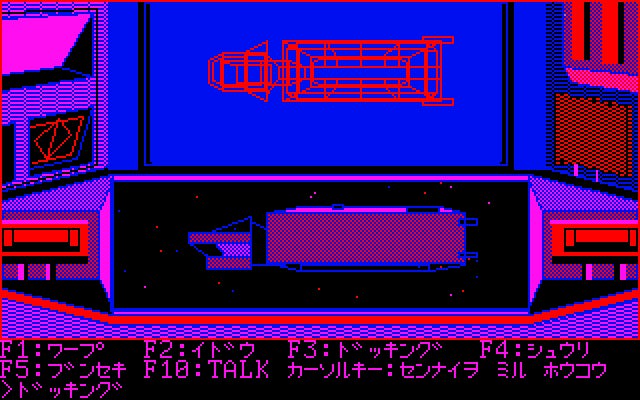 前作同様、コマンド選択+入力方式のアドベンチャーゲームとなっていますが、宇宙空間では、しばしばドッグファイトが発生! シンプルながらも緊張感のあるシューティングシーンが楽しめます。ちなみにシューティングシーンでは、しっかり敵を引き付けてからショットすればヒットさせやすいので覚えておくといいでしょう。