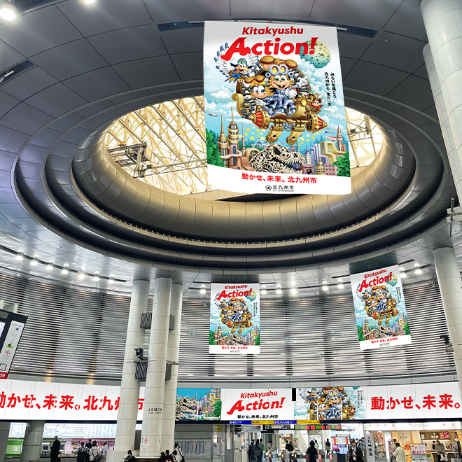 「北九州市誕生マンス」にあわせ、JR小倉駅にて新ビジョ ンのキービジュアルによる装飾を実施します。