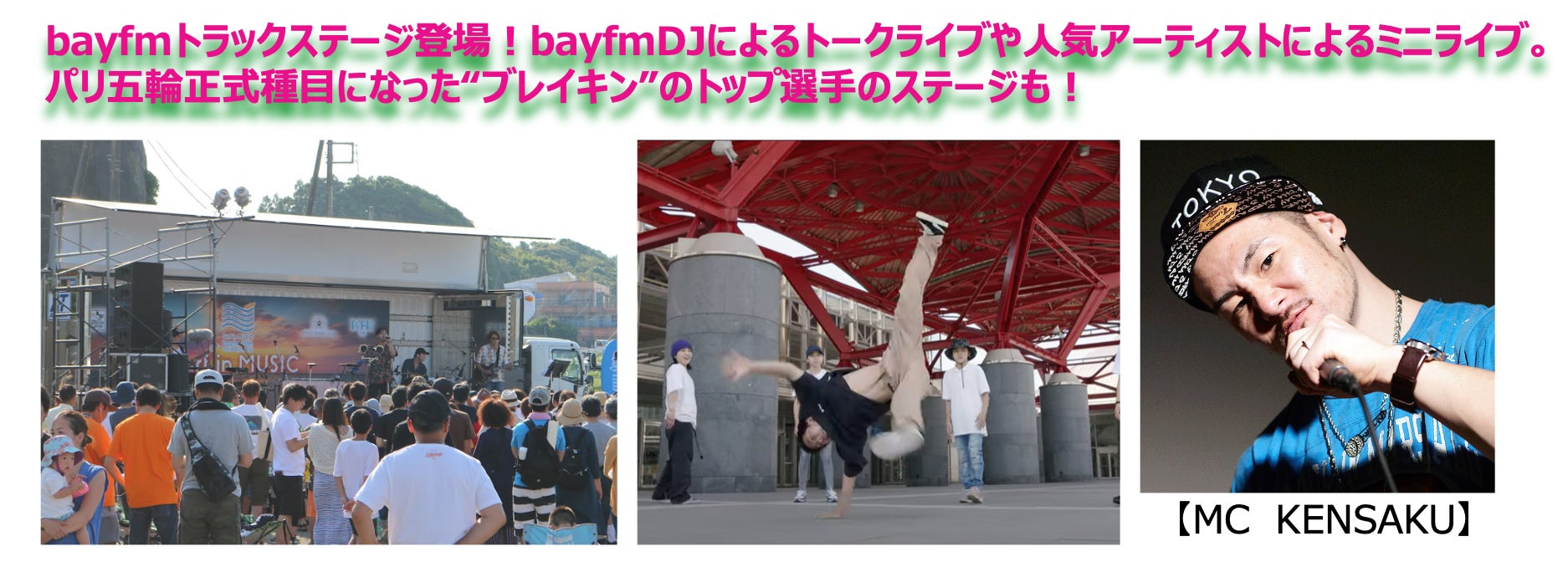 3ホール南広場には、bayfmのトラックステージが登場!人気アーティストによるミニライブや、パリ五輪の正式種目に採用された「ブレイキン」のトップ選手とbayfm「breakin‘ style」でもおなじみ MC KENSAKUも出演します!bayfmトラックステージは、5月4日.5日2日間のみの開催)