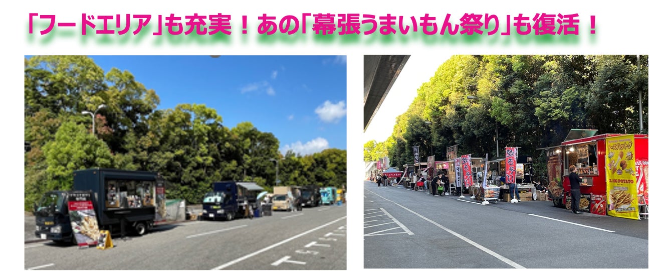 南広場には「幕張うまいもん祭り」の味がフードトラックでかえってきます。近江牛炙り寿司、霜降り牛タン丼…充実のメニューをお楽しみください。