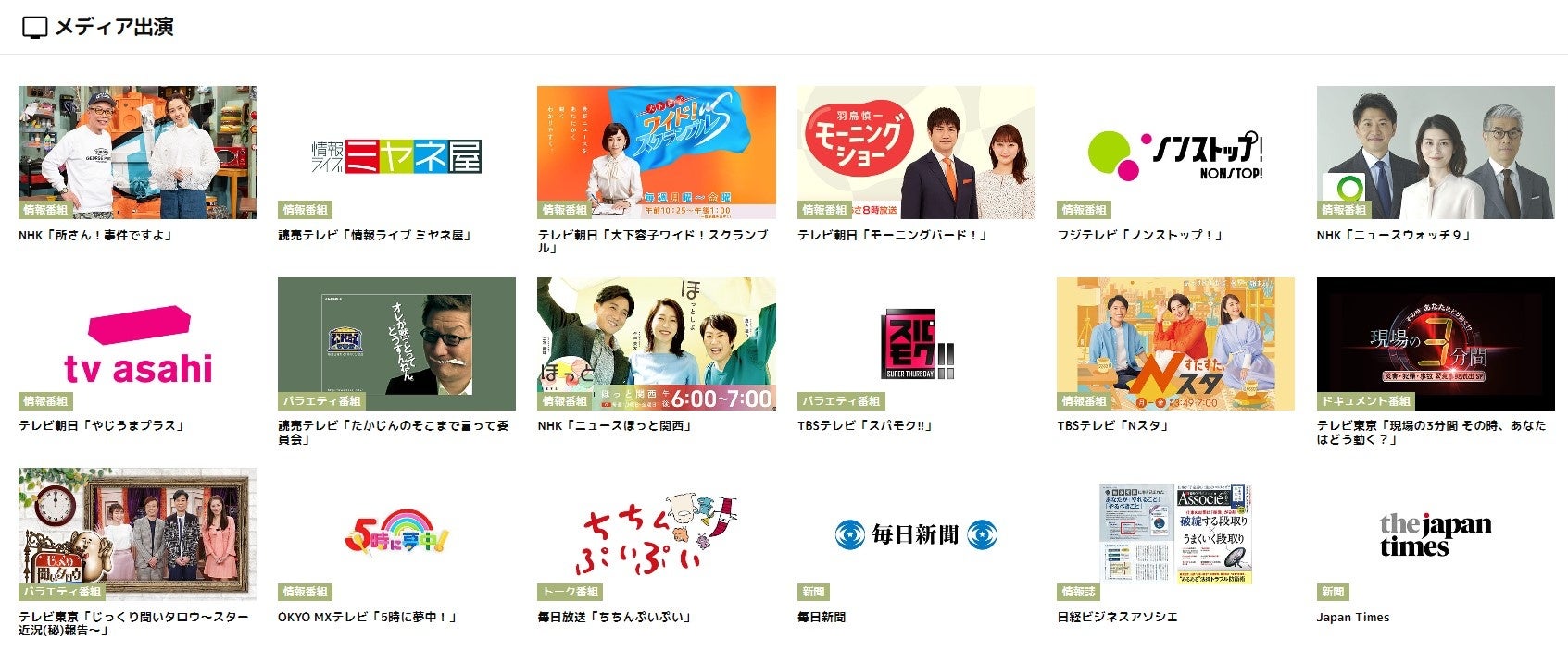 【主なメディア出演】