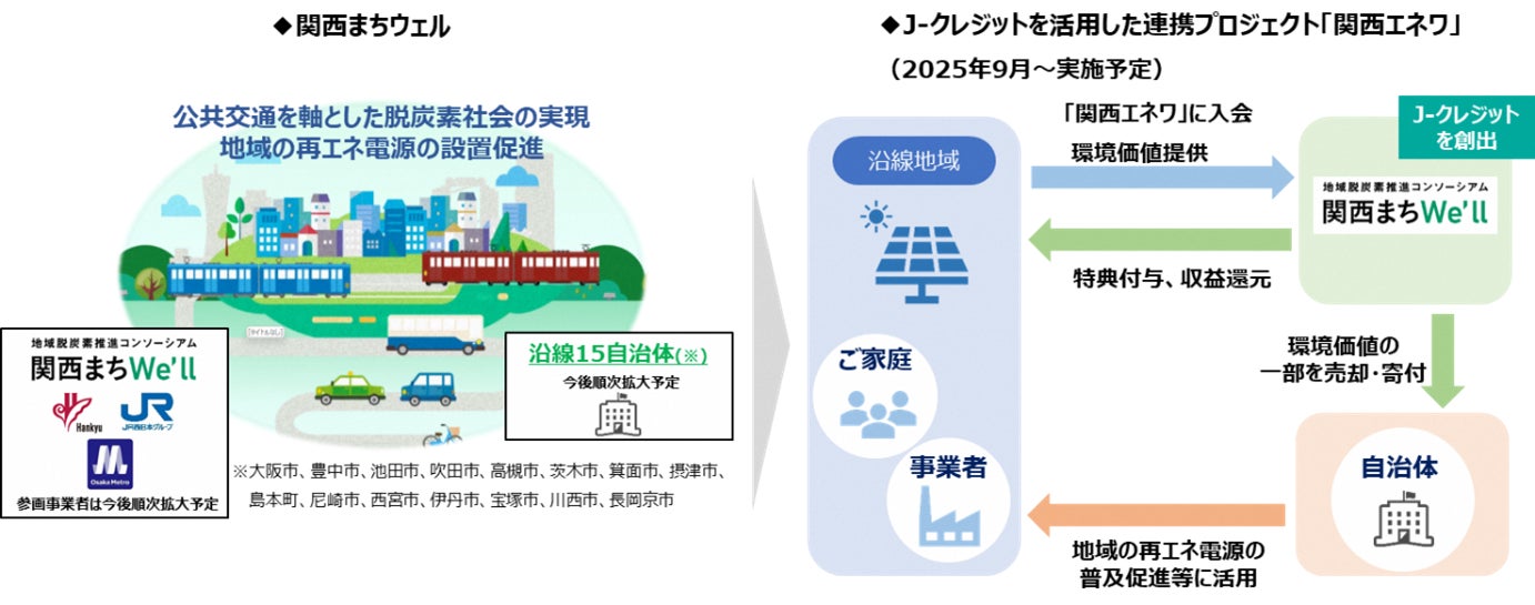 本協定に基づく連携プロジェクトとして、令和7年9月からJ-クレジット制度を活用したプロジェクト( 関西エネワ )を開始予定で、太陽光発電設備を保有する一般家庭や事業者から、太陽光パネルで発電された電力のうち自家消費電力に含まれる環境価値の提供をうけながら、J-クレジットを創出し、公共交通のCO2排出量オフセットに充てて環境負荷のさらなる低減を図るなど、構成企業の各社で脱炭素施策に活用。