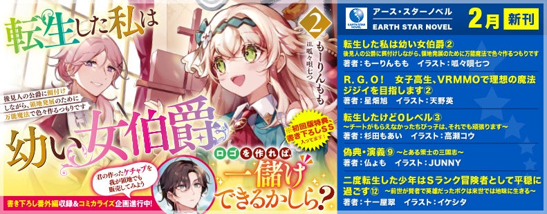 株式会社アース・スター エンターテイメント(東京都品川区)は【アース・スター ノベル】新刊を2月14日(金)より発売いたします。公式サイト(https://www.es-novel.jp) では新作や一部既刊を無料でお試し読みいただけます。