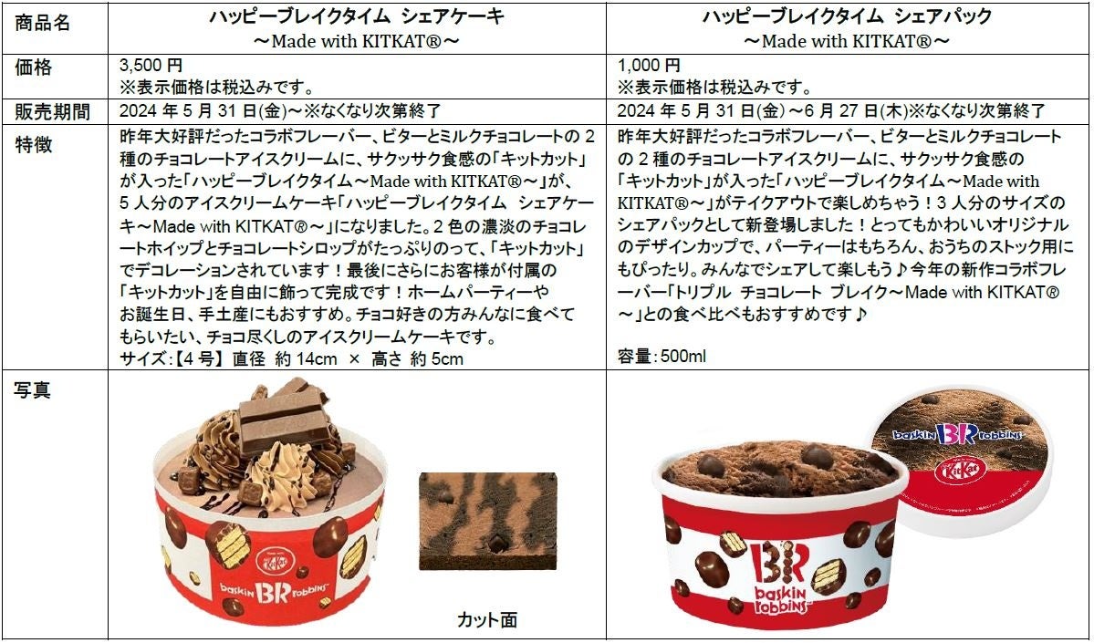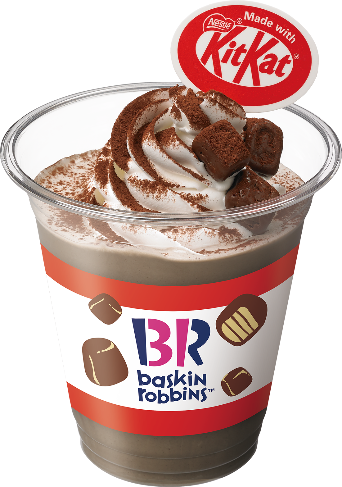 昨年大好評だったビターとミルクチョコレートの2種のチョコレートアイスクリームに、サクッサク食感の「キットカット」が入った「ハッピーブレイクタイム~Made with KITKAT®~」が楽しめるテイクアウト商品!