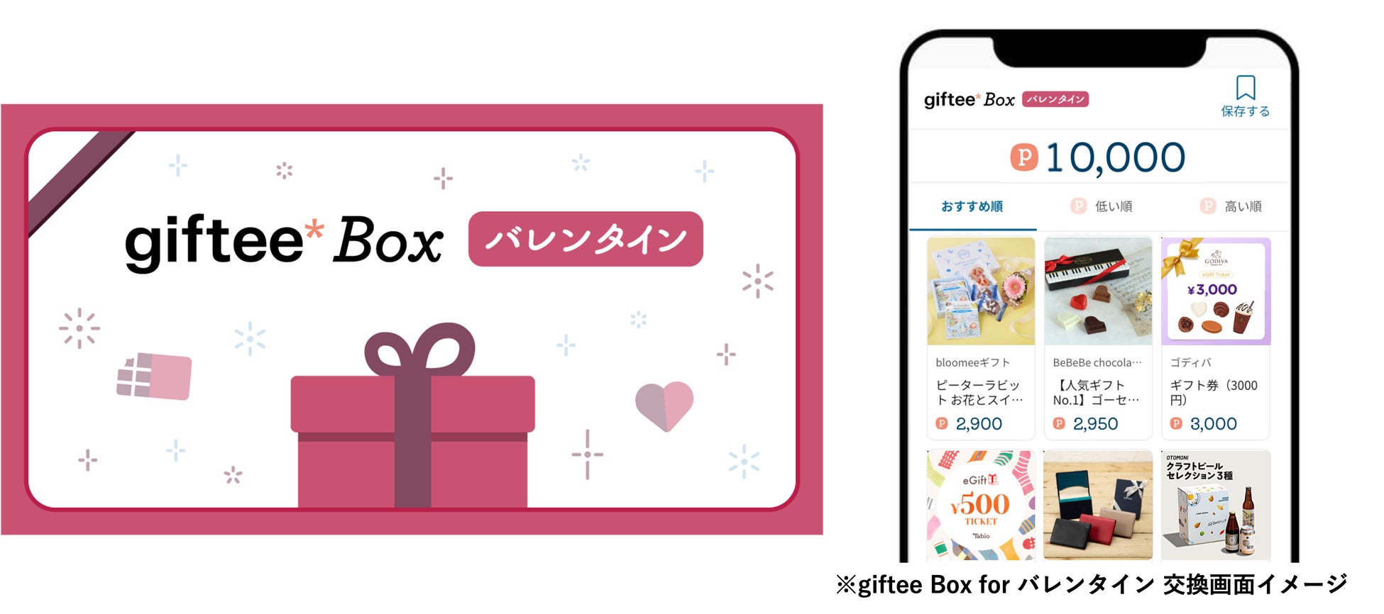「giftee Box」は、贈られたお相手がポイントに応じて商品ラインナップから自由にお好きなアイテムを選んで受け取れる、ギフティが開発した選択型ギフトです。このうち「giftee Box for バレンタイン」は、2023年に販売した「giftee Box」シリーズのうち最も多くお買い求めいただいたギフトボックスです。