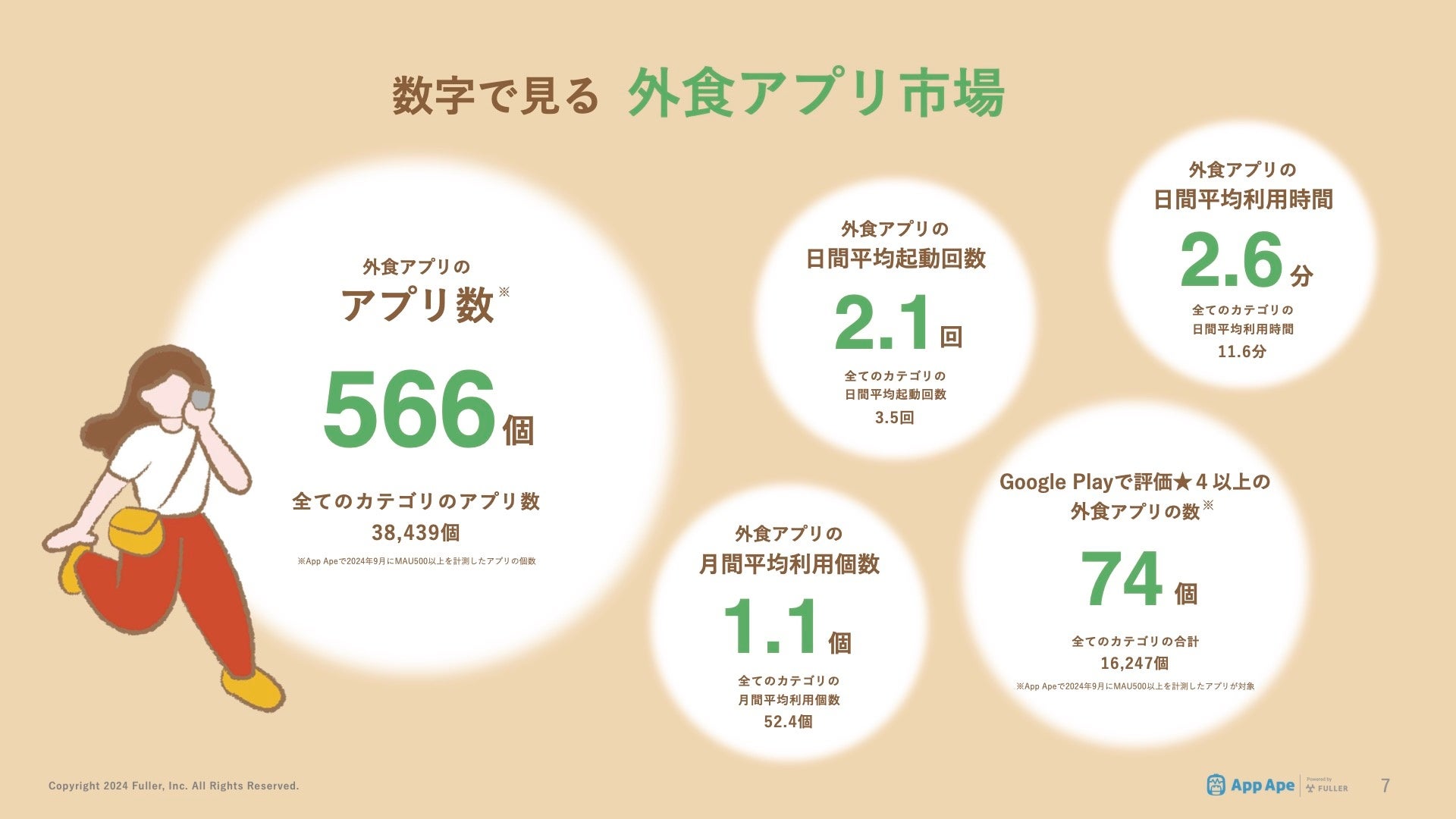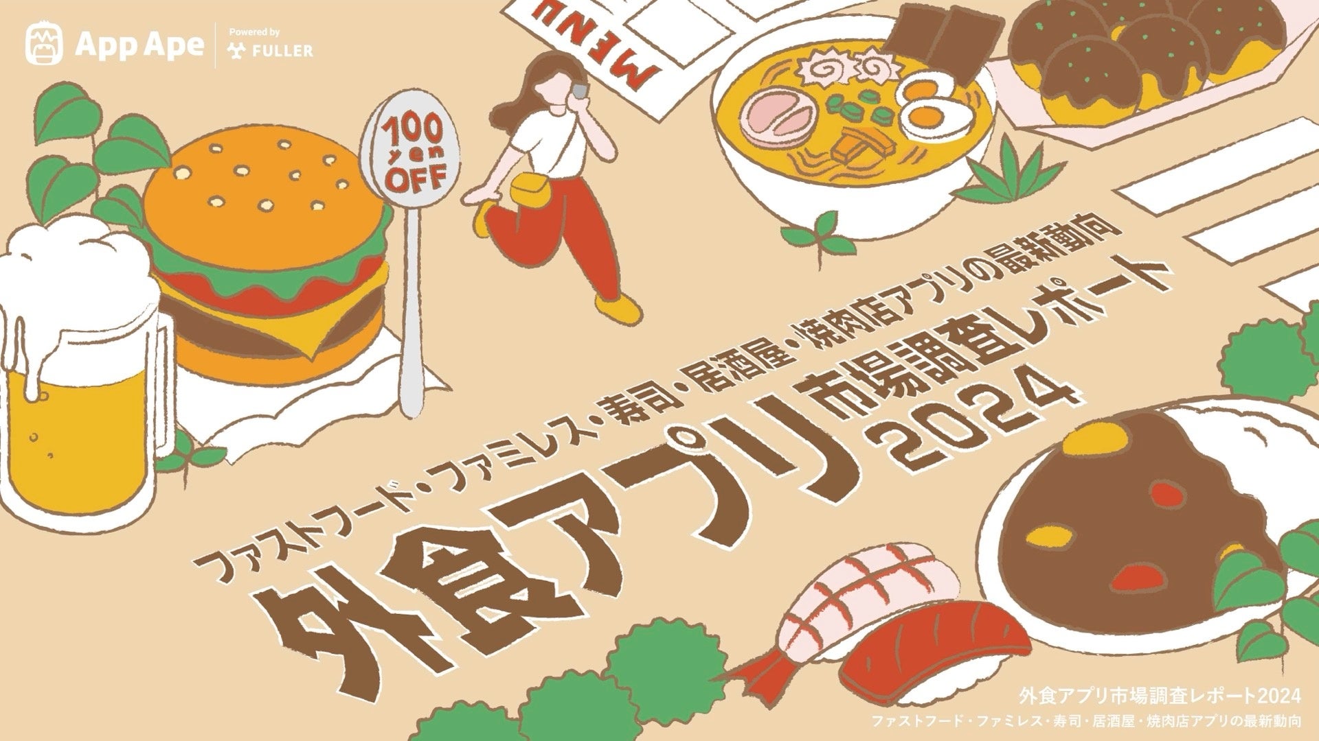 フラー株式会社(本社:新潟県新潟市、代表取締役社長:山﨑将司、以下「フラー」)は、アプリ市場分析サービス「App Ape(アップ・エイプ)」で蓄積するデータをもとに、外食アプリの動向や特徴をまとめた「外食アプリ市場調査レポート2024」を公開しました。