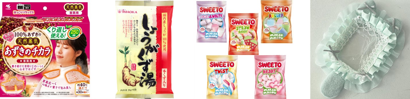 高反発で新しい食感のマシュマロ。ハート、ツイスト、イチゴなど形も色も可愛いお菓子です。