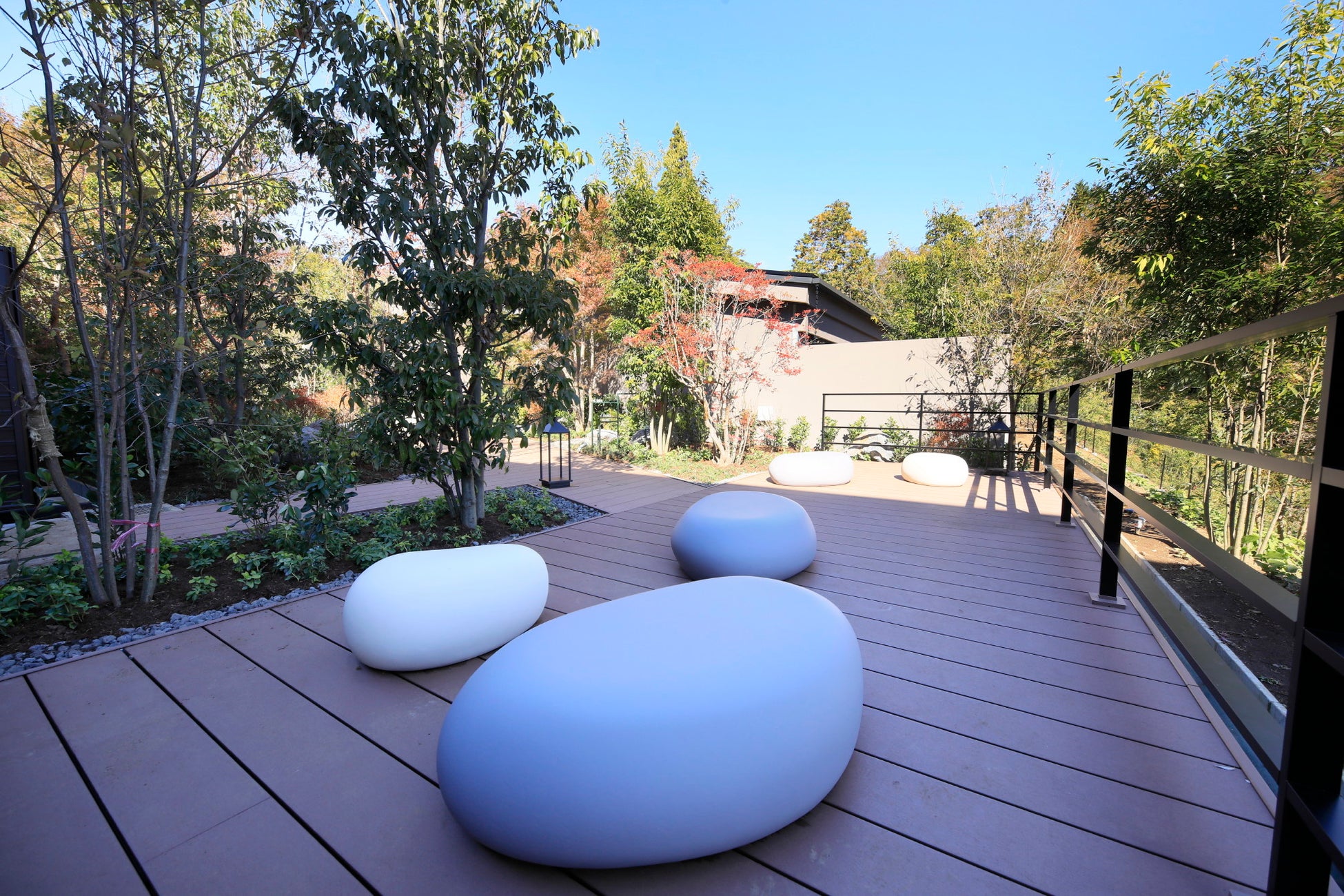 本館および温浴棟の間には、四季折々の箱根・仙石原の移ろいを感じられるテラスを設置。