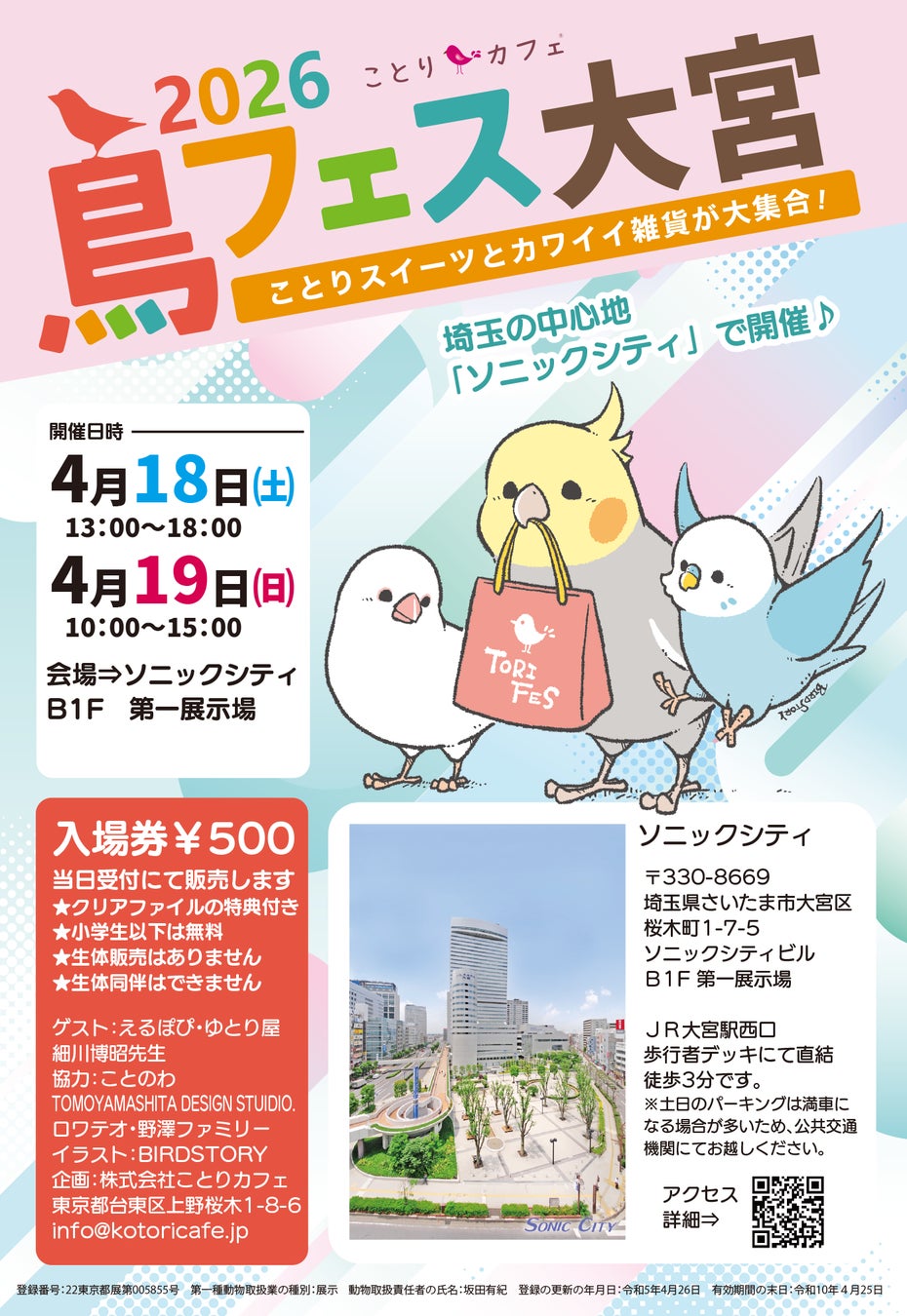 鳥フェス大宮初開催!4月18日・19日「ソニックシティ」で開催します♪
