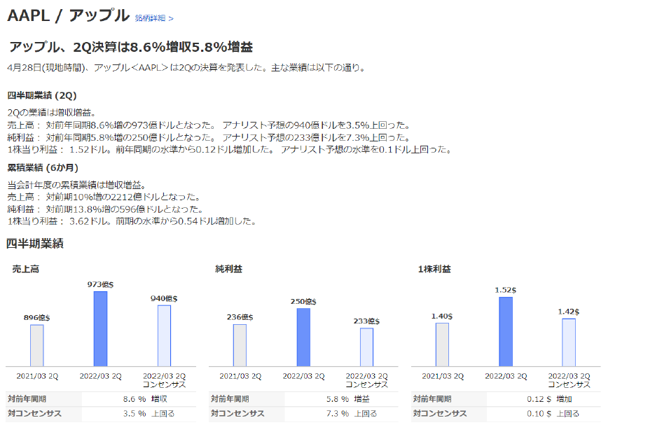 楽天証券、米国株式投資情報を拡充。「米国株決算速報」提供開始