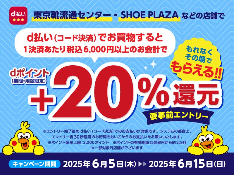 期間中、d払いで6,000円(税込)以上のお支払いをすると20%ポイント還元します。