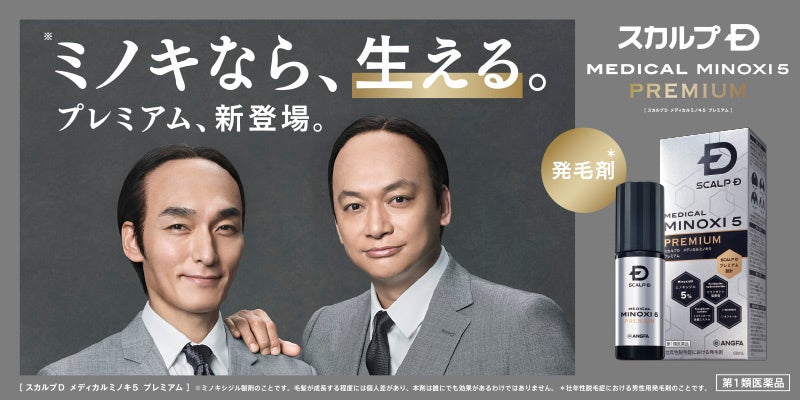 アンファー株式会社(本社:東京都千代田区、代表取締役社長:叶屋宏一 以下「アンファー」)は、草彅剛さん・香取慎吾さんを起用した、発毛剤※「スカルプD メディカルミノキ5 プレミアム」(第1類医薬品)のTVCMを2022年11月6日(日)からオンエアします。彼らが演じる「ミノキ兄弟」は、CM総合研究所の発表した「BRAND OF THE YEAR 2018」において「消費者を動かしたCM展開 特別賞」や「総務大臣賞/ACCグランプリ」「第56回ギャラクシー賞奨励賞」を受賞しました。