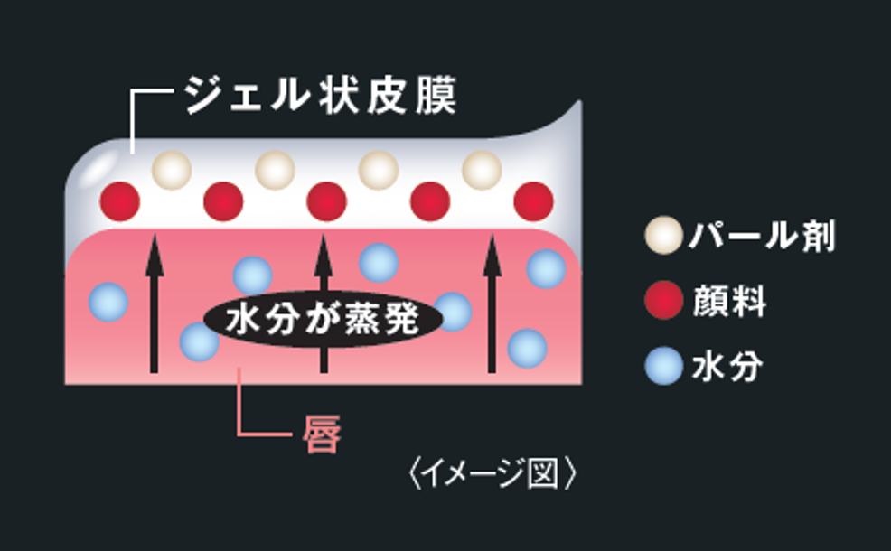 唇から蒸発する水分を活用して密着ジェル膜に変化する独自技術※により、長時間の色持ちを実現します。