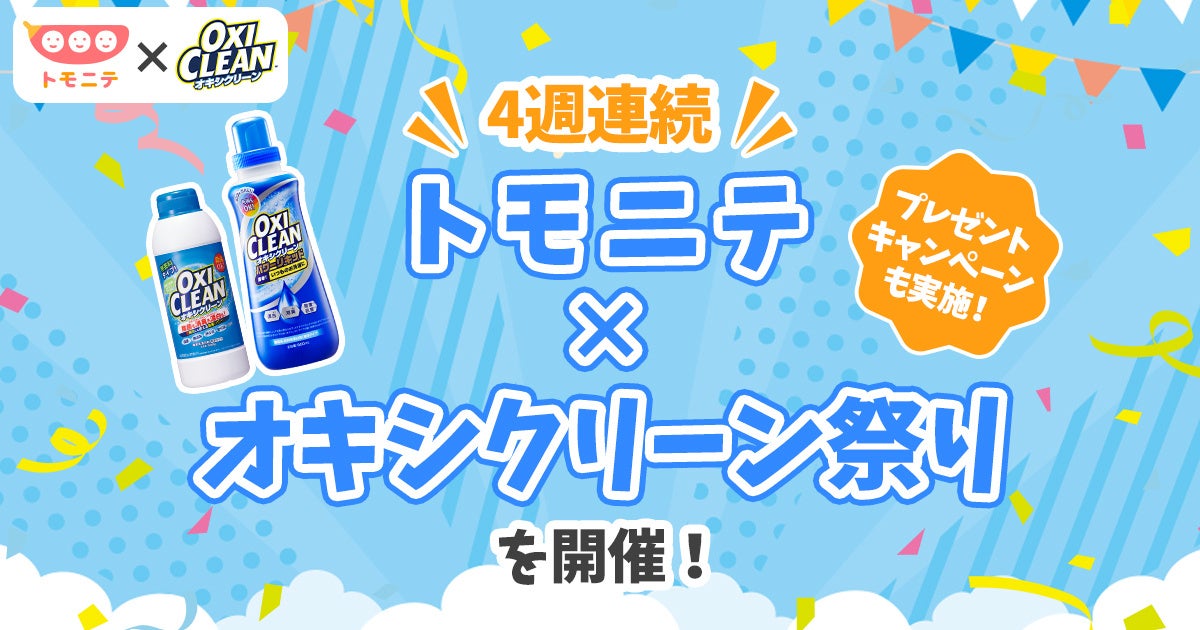 6月は梅雨もはじまり、公園や屋外で遊びにくくなる時期。おうち遊びもマンネリしてしまいがちです。一方、家で過ごすことが多くなる梅雨の時期は、掃除や洗濯にぴったりな時期とも言えます。トモニテでは、6月からの約1ヶ月間をお掃除月間とし、オキシクリーンとタイアップを実施。トモニテ公式X・Instagramを通じ、4週に渡り掃除や洗濯が楽しくなるような情報を配信します。