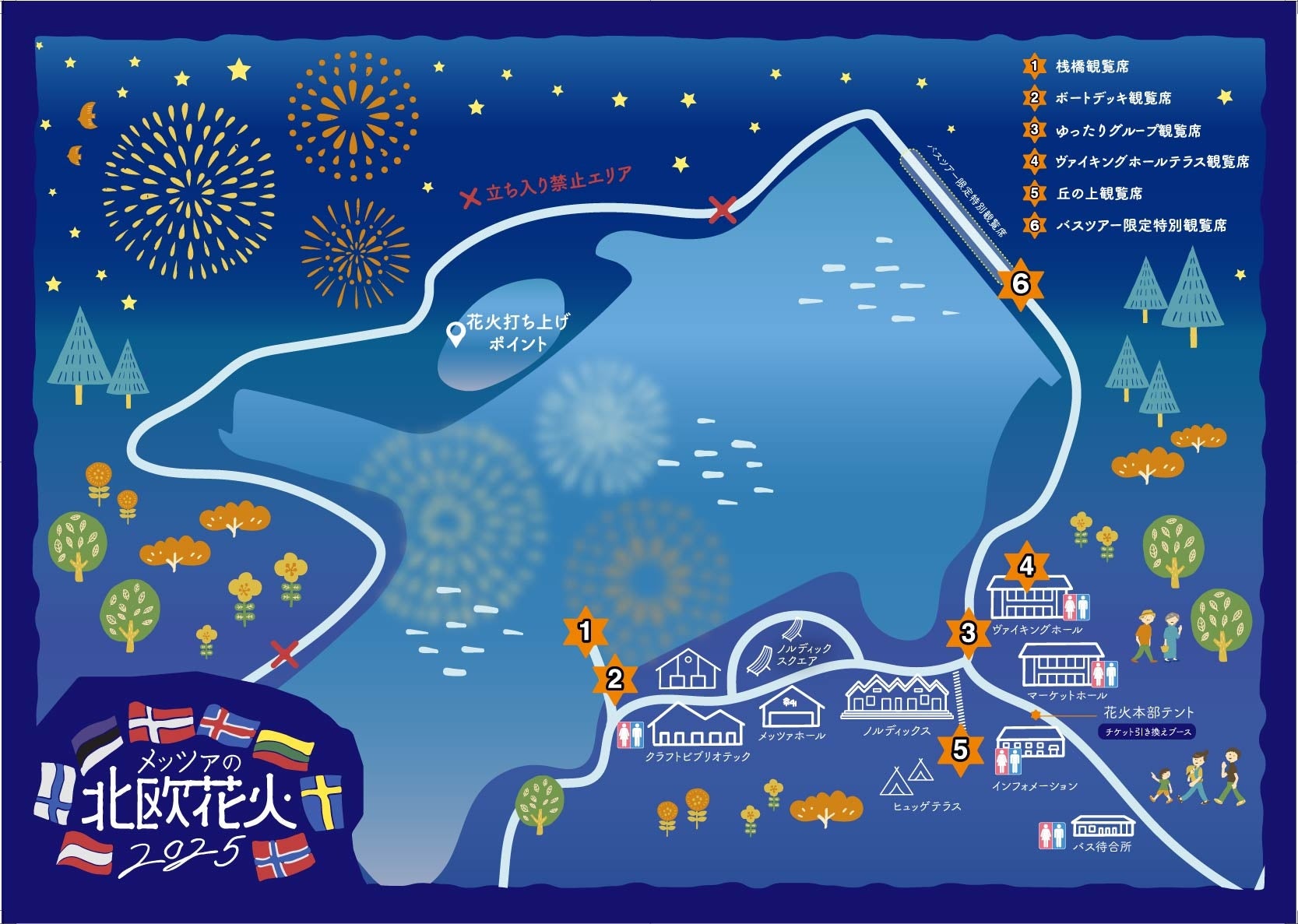 株式会社メッツァ(代表取締役社長:望月潔)が運営する北欧ライフスタイル体験施設「メッツァビレッジ」(埼玉県飯能市)では、7月12日(土)~9月21日(日)の期間、バルト三国を含む北欧各国の大使館の後援のもと、「メッツァの北欧花火2025」を開催いたします。北欧8ヶ国の大使館・大使館スタッフ推薦の音楽をBGMに、各国の国旗の色をイメージした打ち上げ花火を約15分間にわたって披露。また、お買い物やお食事で利用できるギフトチケットが付いた特別観覧席を、6月7日(土)より販売開始いたします。
