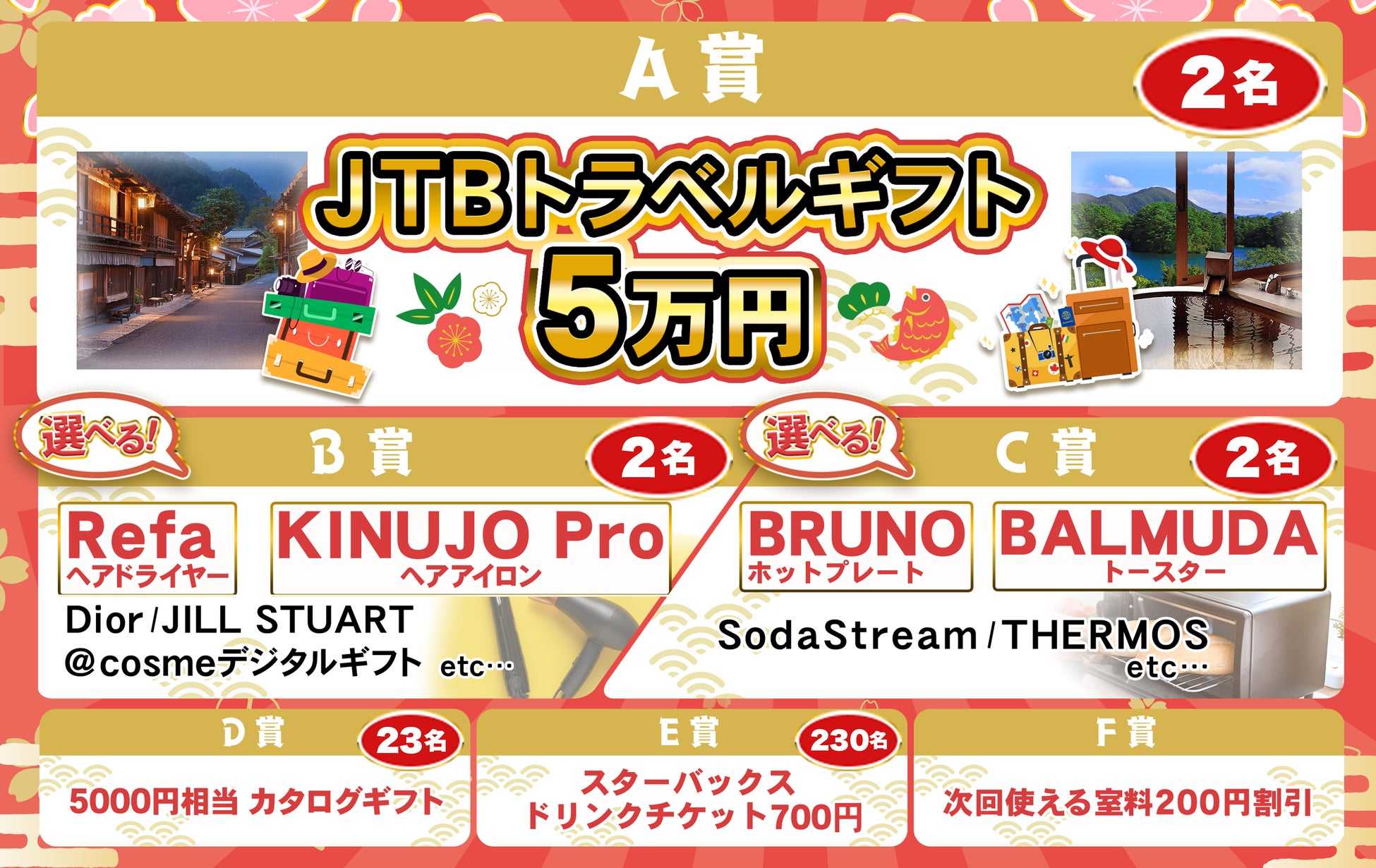 — 旅行券・人気コスメ・家電など、幅広いお客様にお楽しみいただける豪華賞品をご用意 —