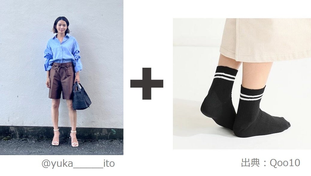 去年よりポイントで使われることが増えたラインソックス。今年はブラウン系が推される傾向なので、ソックスは黒などを選ぶとシックな印象に。